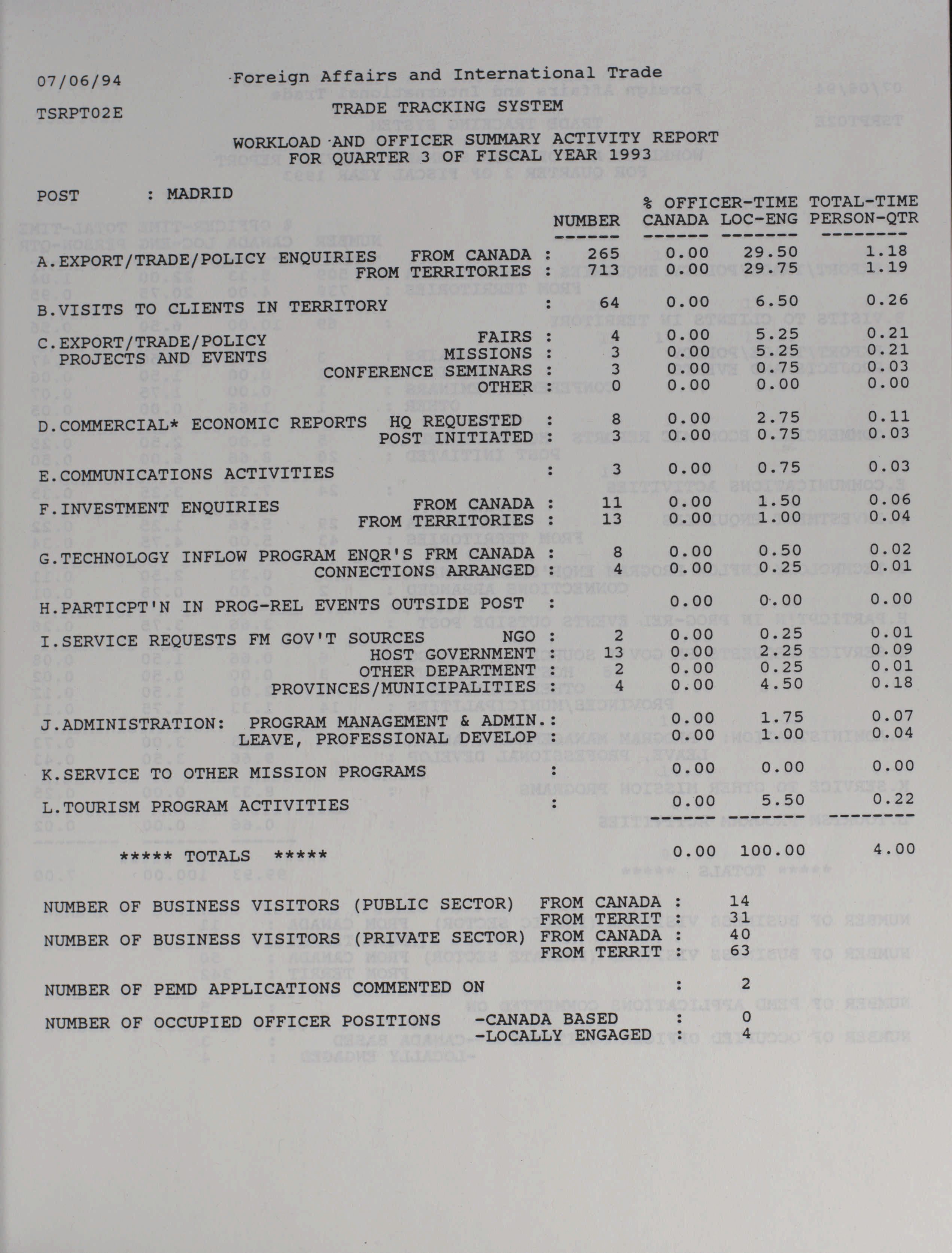 Trade and Industrial Development Program quarterly results and activity report = Programme d'expansion commerciale et industrielle rapport trimestriel des activités et des resultats.