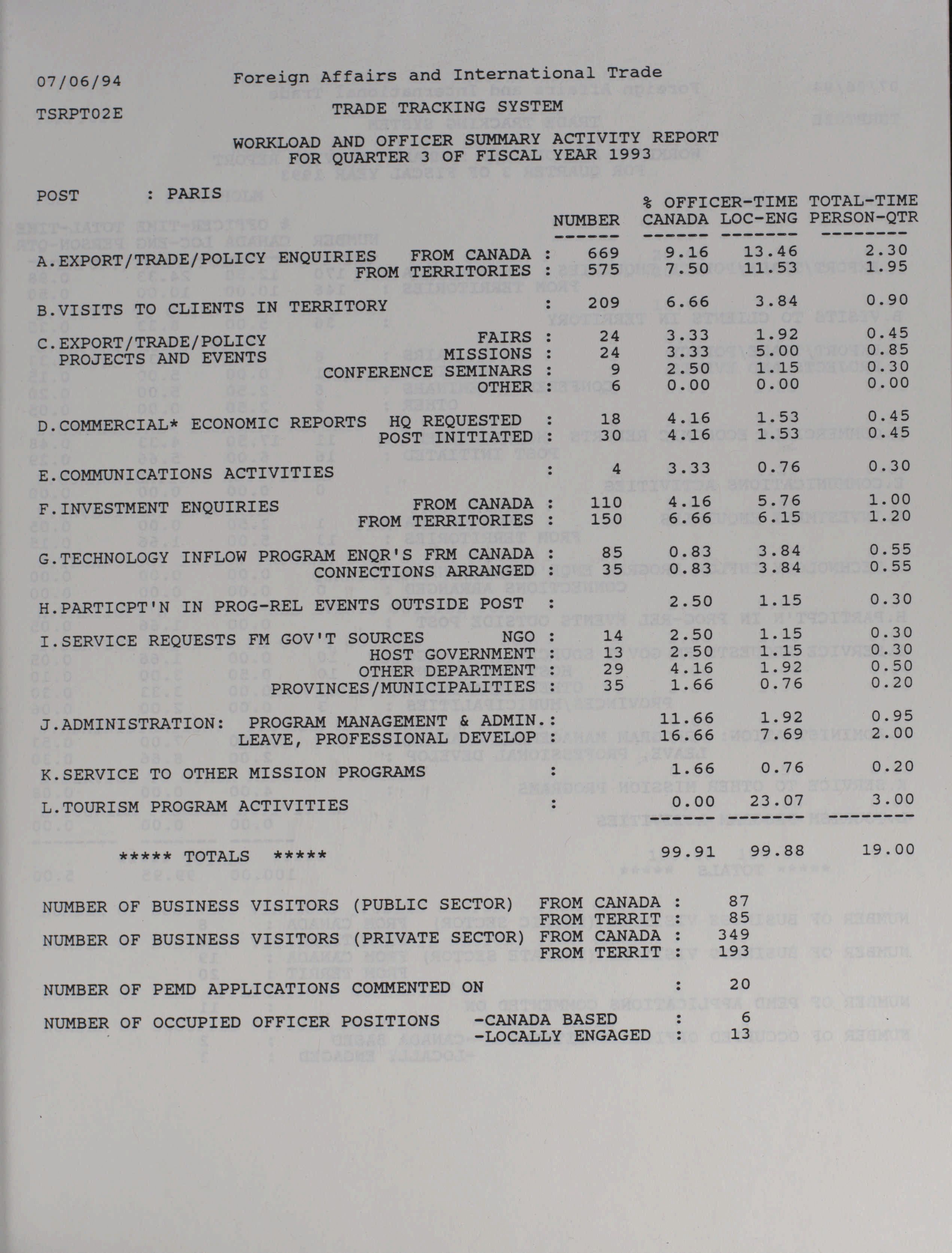 Trade and Industrial Development Program quarterly results and activity report = Programme d'expansion commerciale et industrielle rapport trimestriel des activités et des resultats.