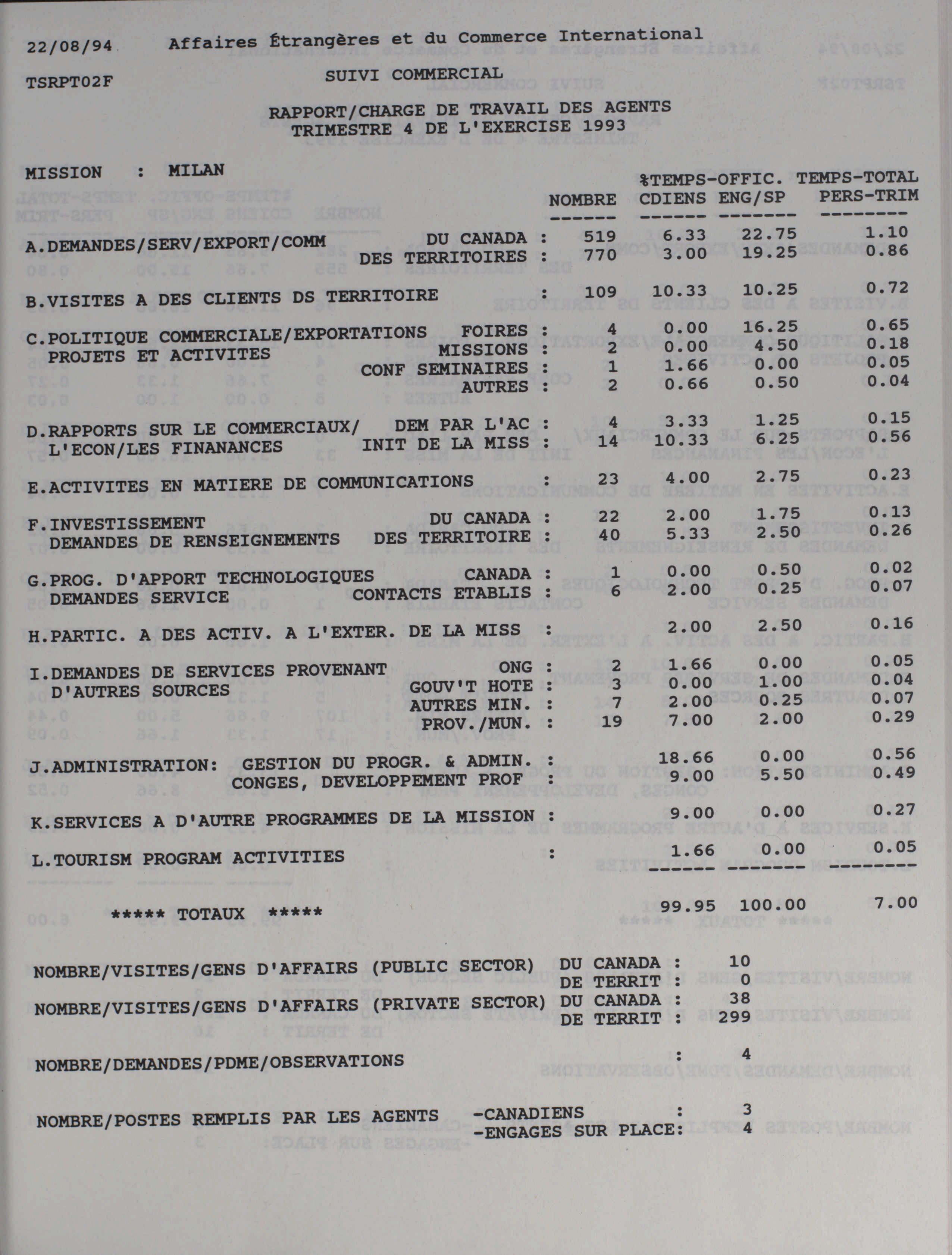 Trade and Industrial Development Program quarterly results and activity report = Programme d'expansion commerciale et industrielle rapport trimestriel des activités et des resultats.
