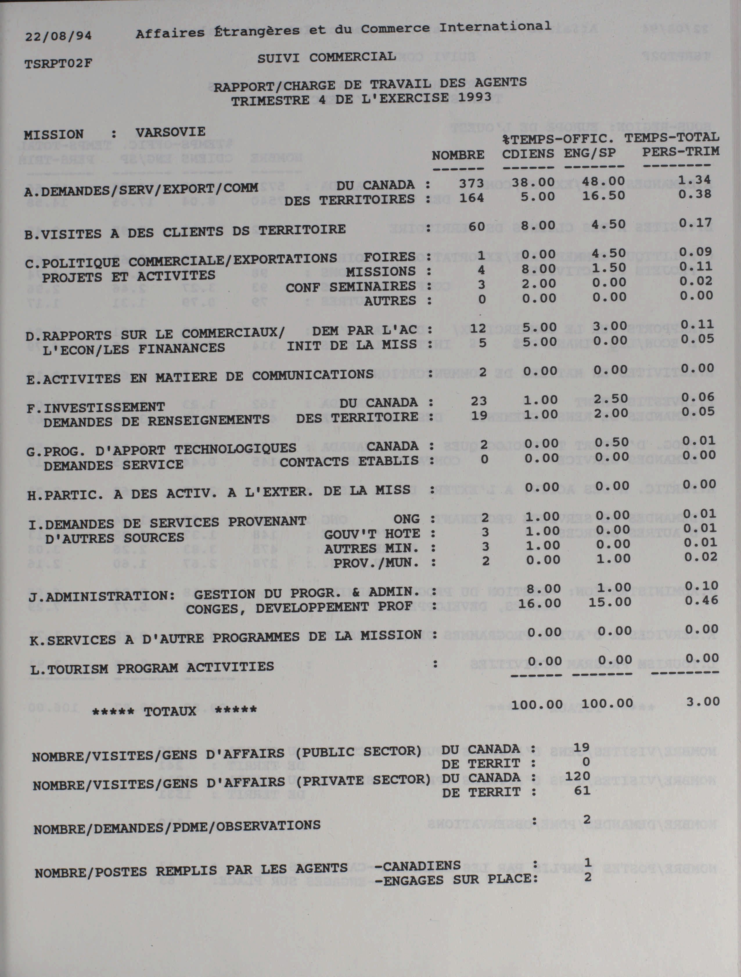 Trade and Industrial Development Program quarterly results and activity report = Programme d'expansion commerciale et industrielle rapport trimestriel des activités et des resultats.