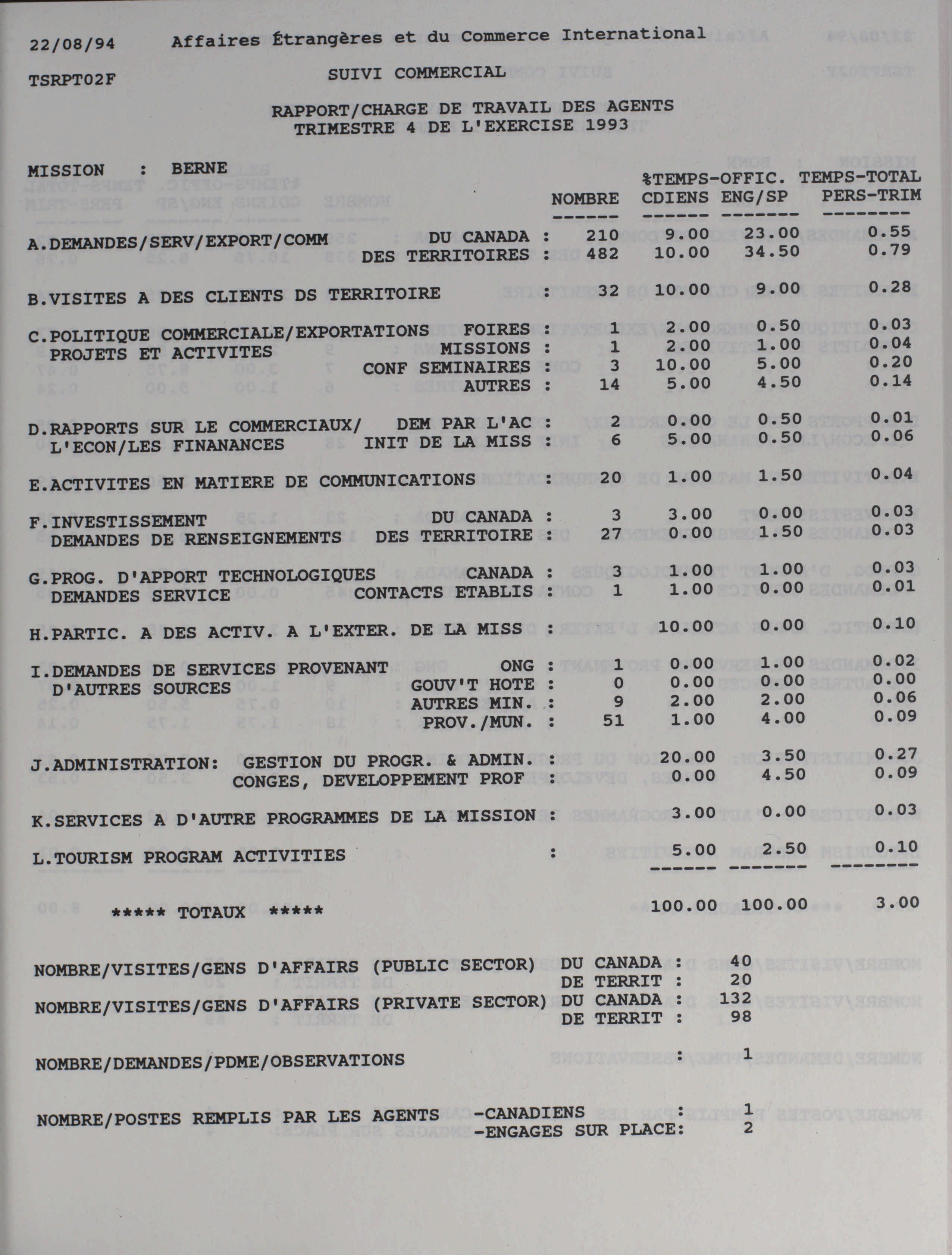 Trade and Industrial Development Program quarterly results and activity report = Programme d'expansion commerciale et industrielle rapport trimestriel des activités et des resultats.