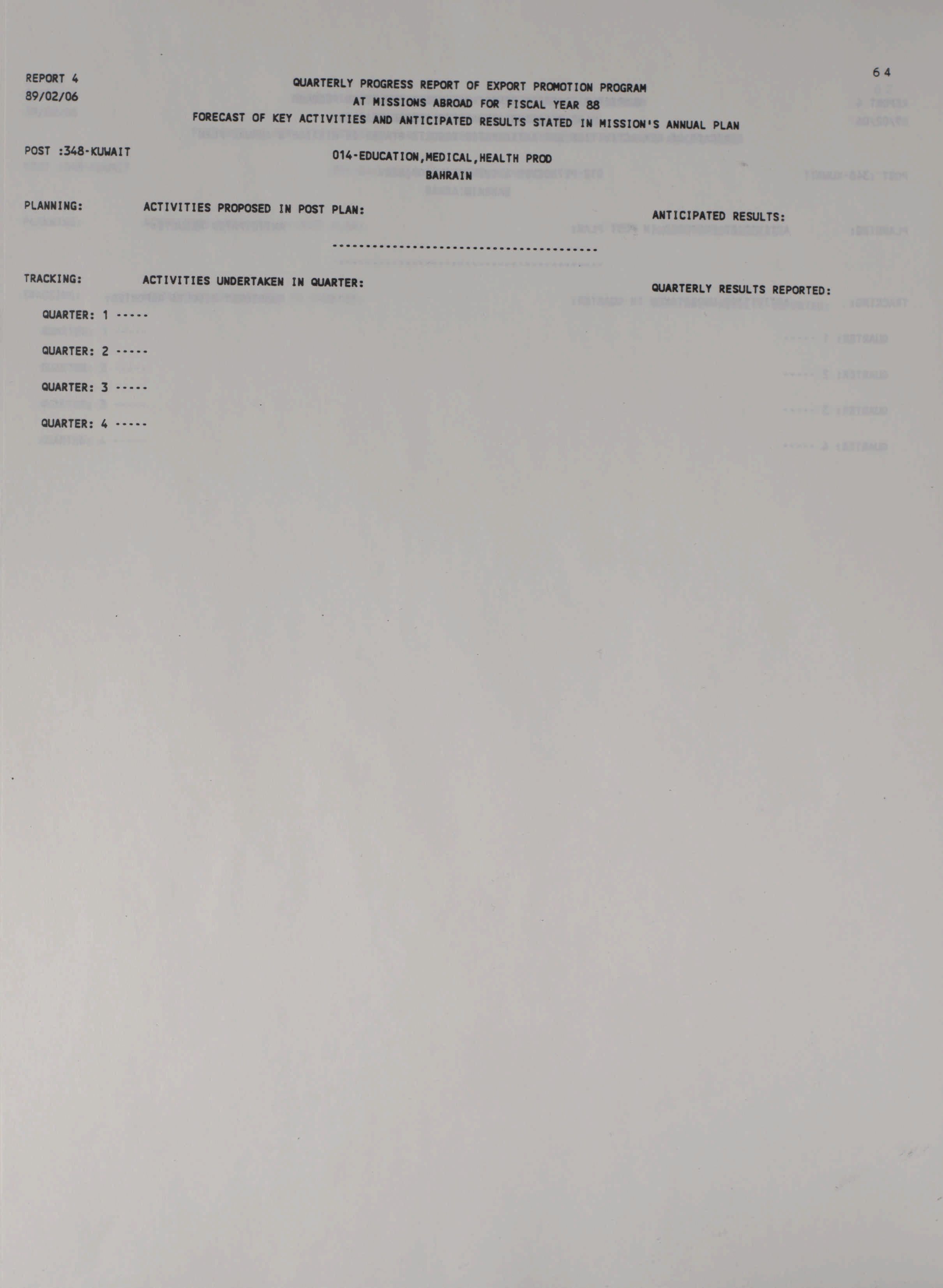 Trade and Industrial Development Program quarterly activity report : Africa and Middle East = Programme d'expansion commerciale et industrielle rapport trimestriel des activités : Afrique et Moyen-Orient.