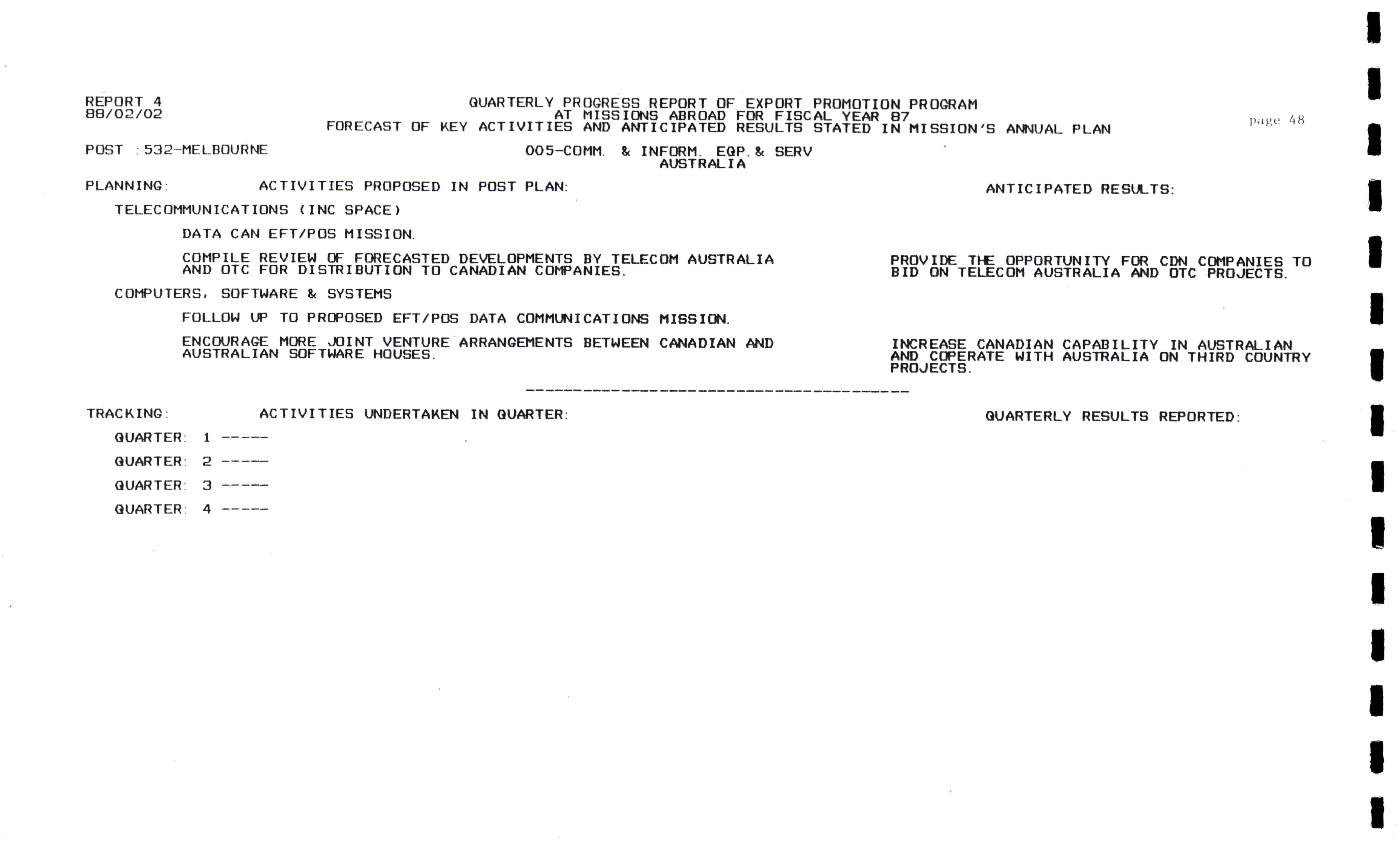 - Trade and Industrial Development Program quarterly activity report Asia and Pacific = Programme d'expansion commerciale et industrielle rapport trimestriel des activités Asie et Pacifique.