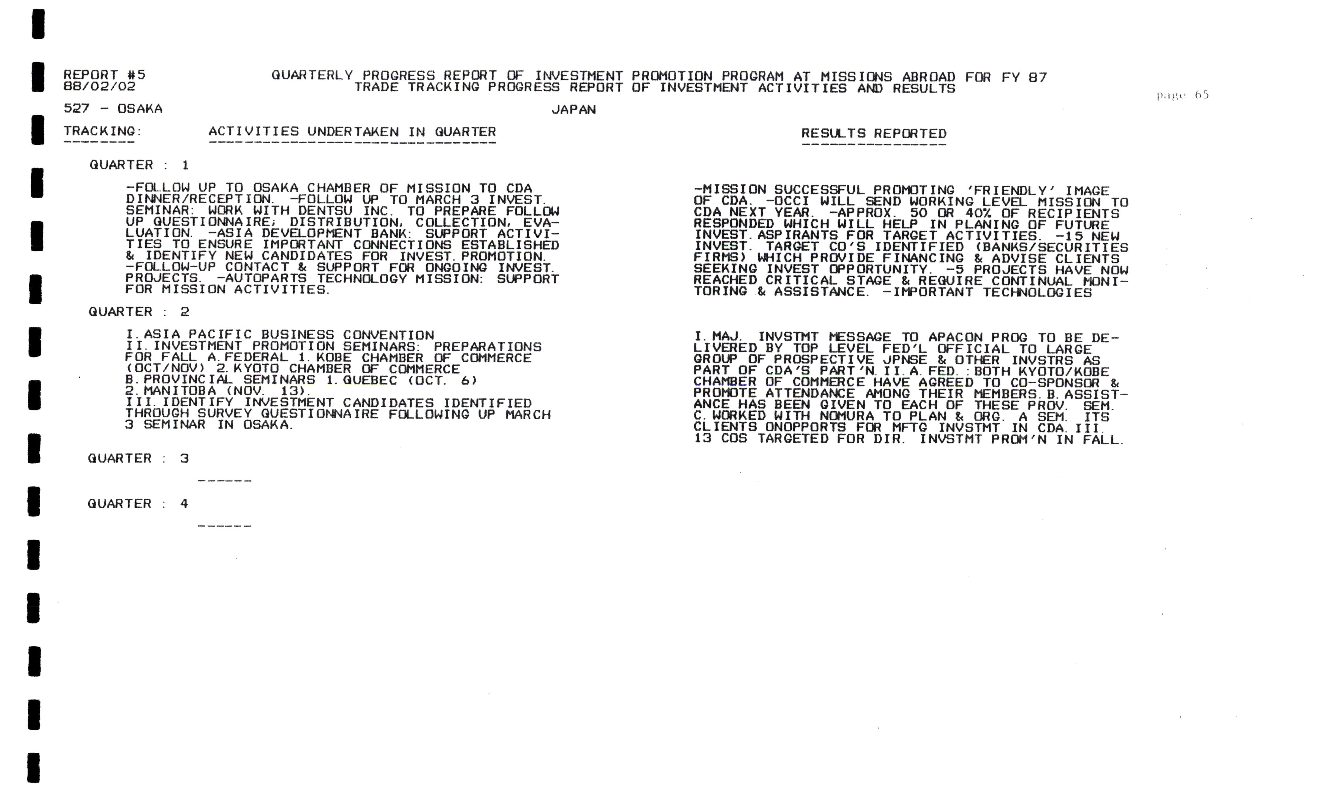 Trade and Industrial Development Program quarterly activity report Asia and Pacific = : juillet-septembre 1987
