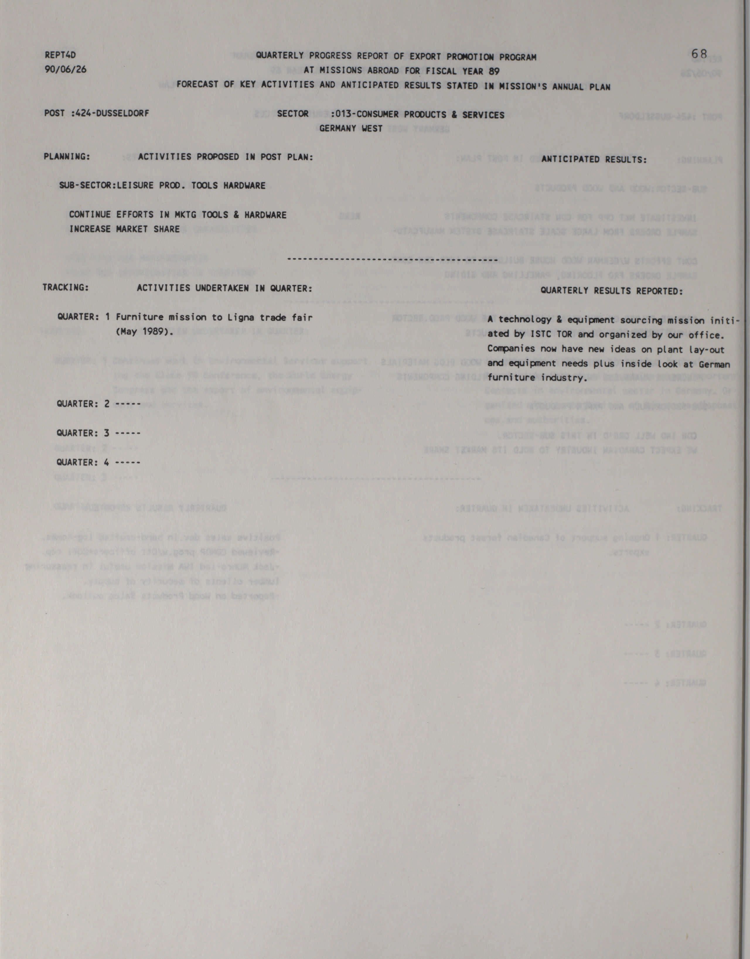 Trade and Industrial Development Program quarterly activity report : Europe = Programme d'expansion commerciale et industrielle rapport trimestriel des activités : Europe.