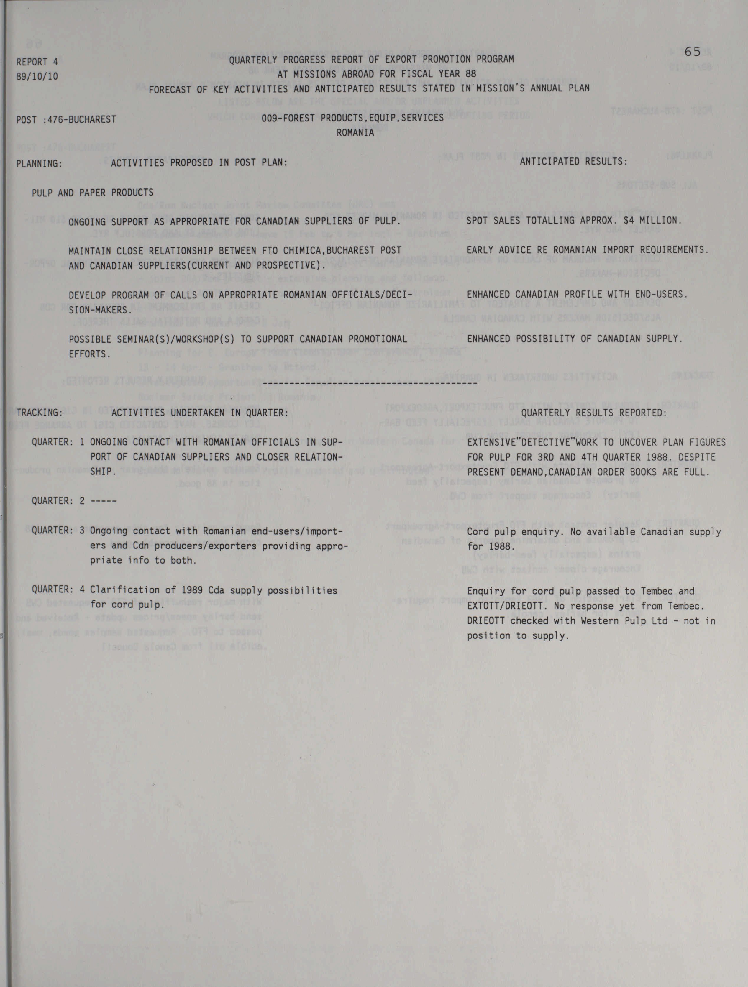 Trade and Industrial Development Program quarterly activity report : Europe = Programme d'expansion commerciale et industrielle rapport trimestriel des activités : Europe.