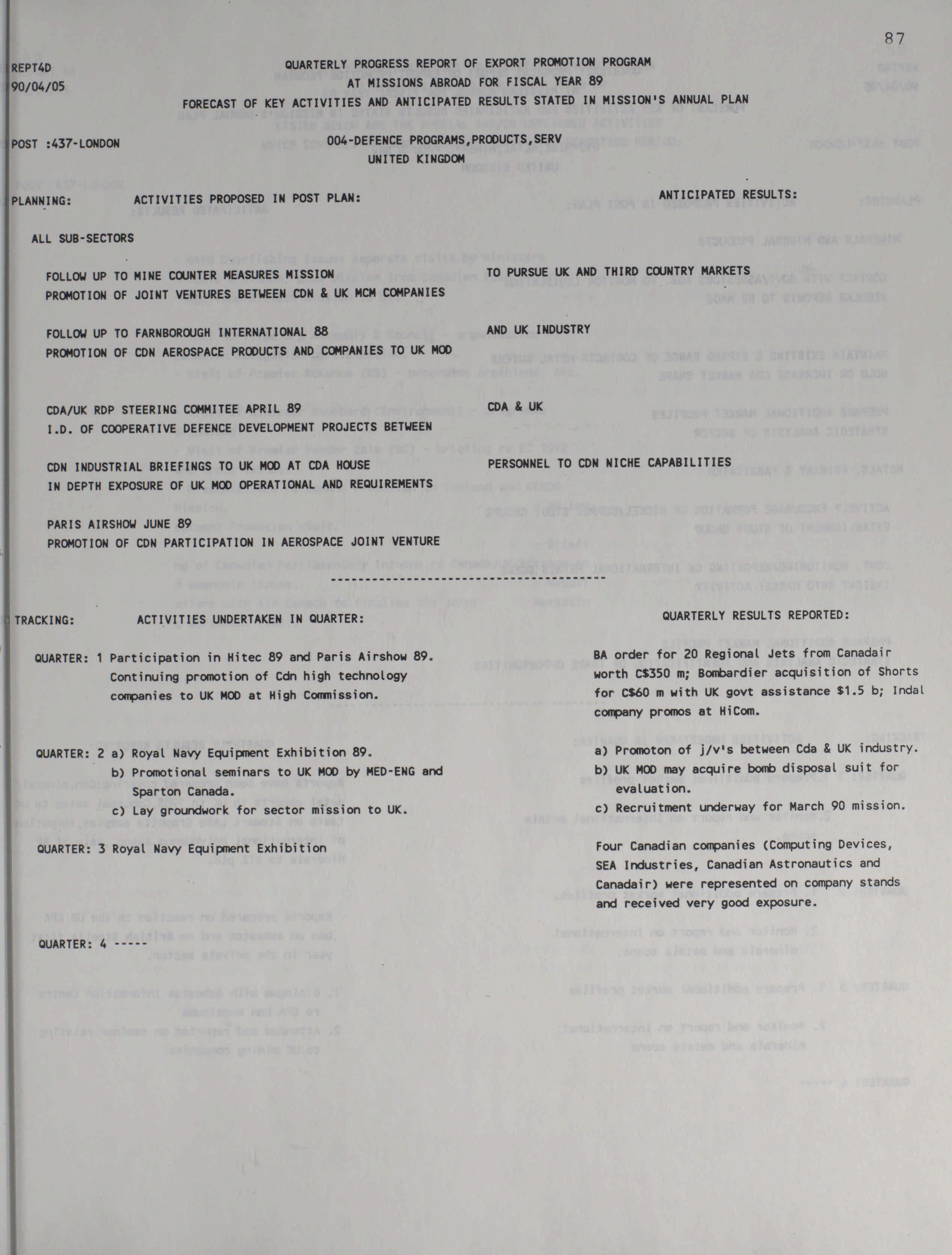 Trade and Industrial Development Program quarterly activity report : Europe = Programme d'expansion commerciale et industrielle rapport trimestriel des activités : Europe.
