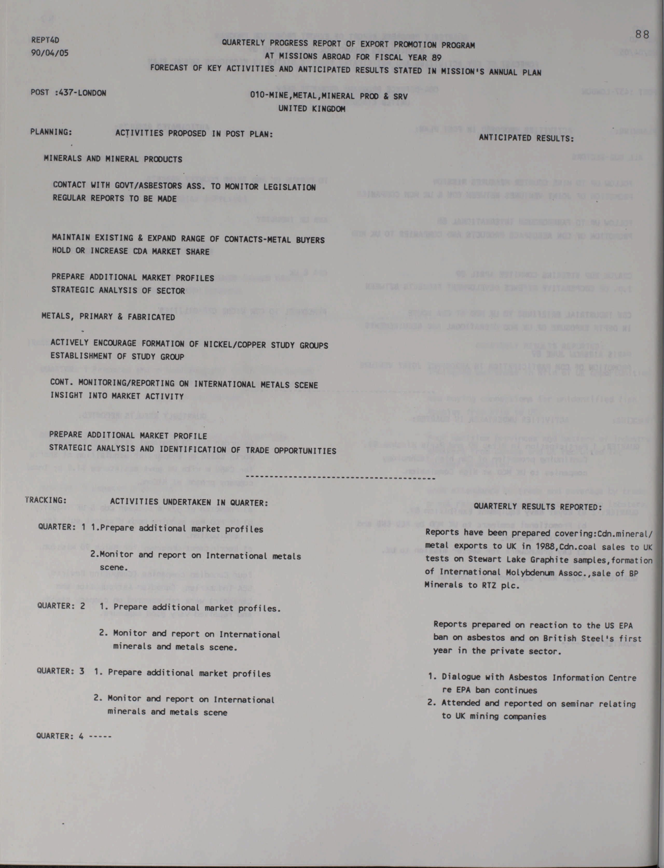 Trade and Industrial Development Program quarterly activity report : Europe = Programme d'expansion commerciale et industrielle rapport trimestriel des activités : Europe.