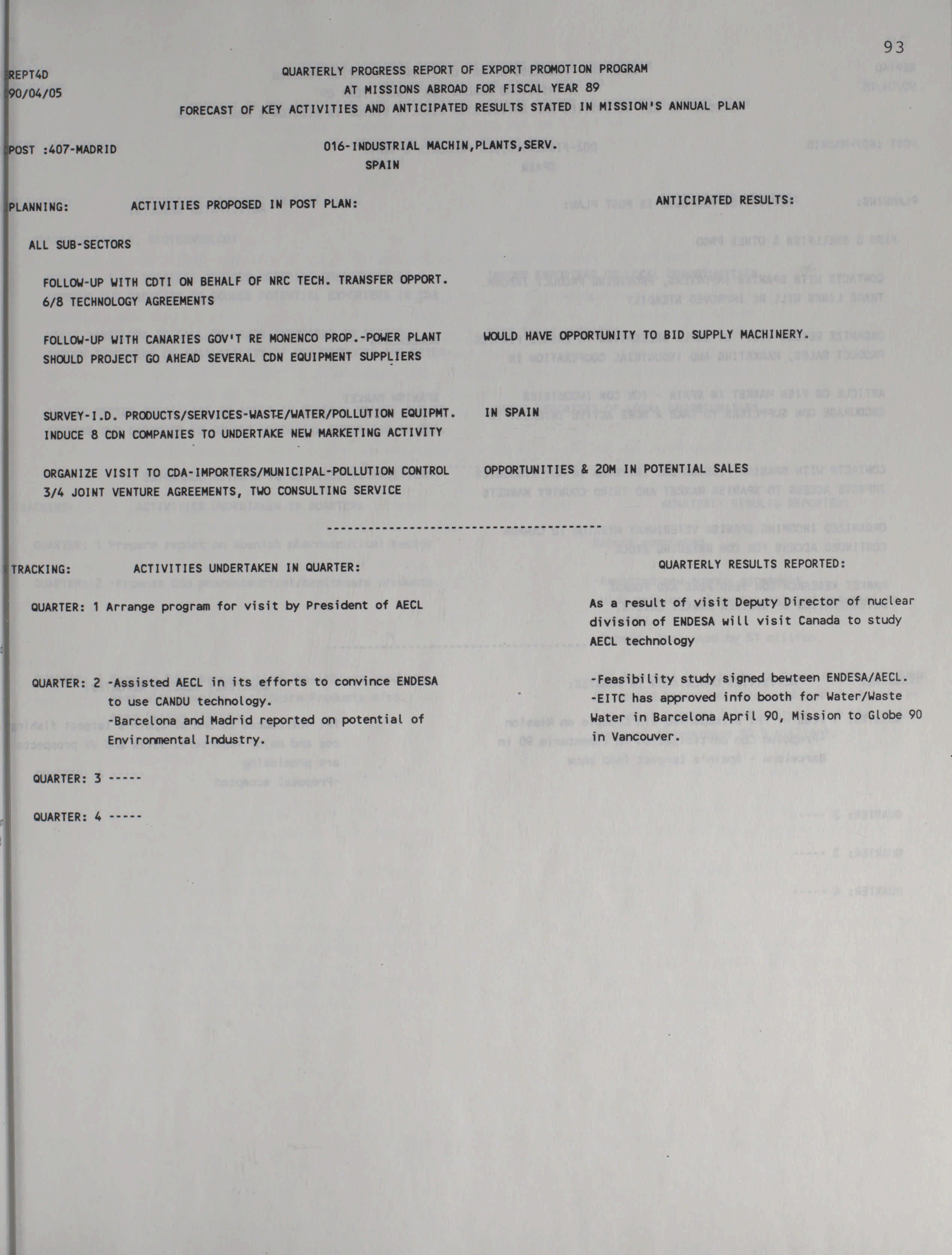 Trade and Industrial Development Program quarterly activity report : Europe = Programme d'expansion commerciale et industrielle rapport trimestriel des activités : Europe.