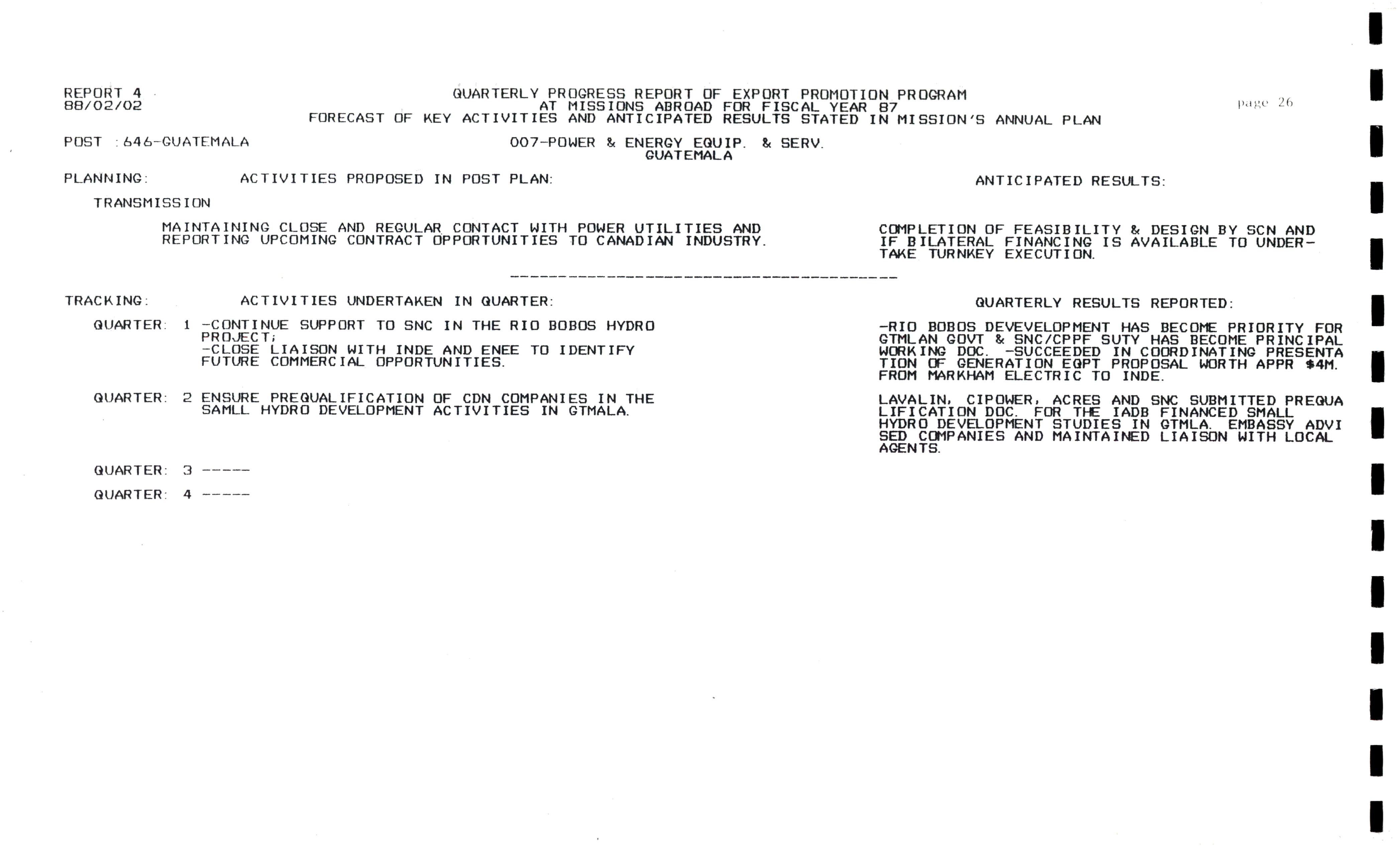 Trade and Industrial Development Program quarterly activity report : Latin America and Caribbean = Programme d'expansion commerciale et industrielle rapport trimestriel des activités : Amérique latine et Antilles.