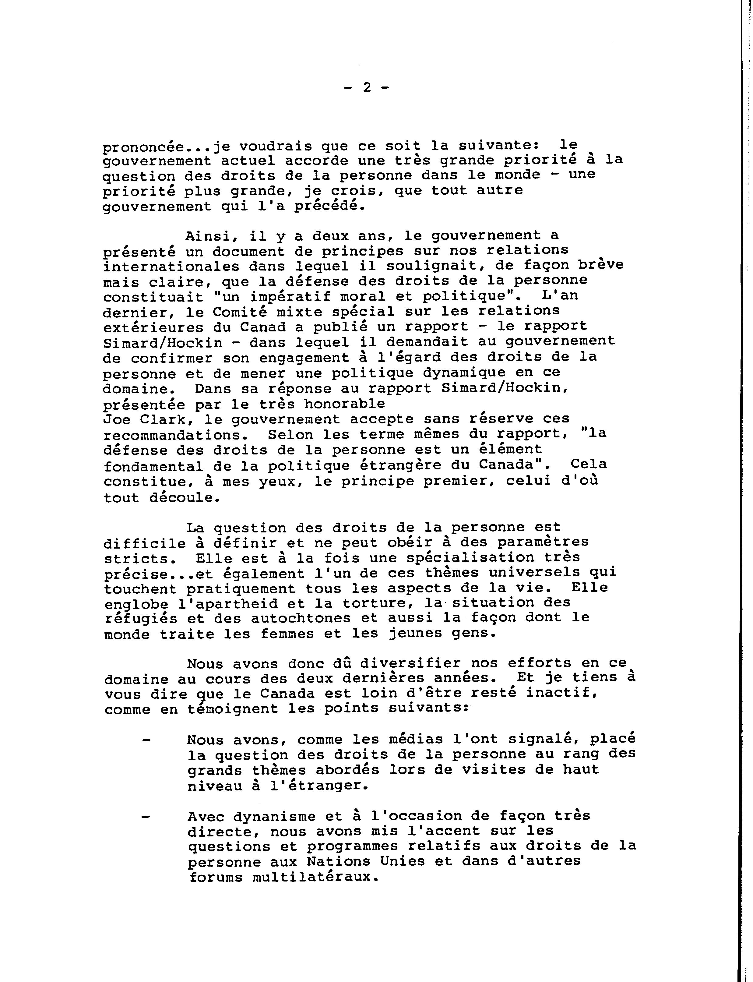 - Les droits de la personne et la politique étrangère du Canada : recueil de déclarations et discours