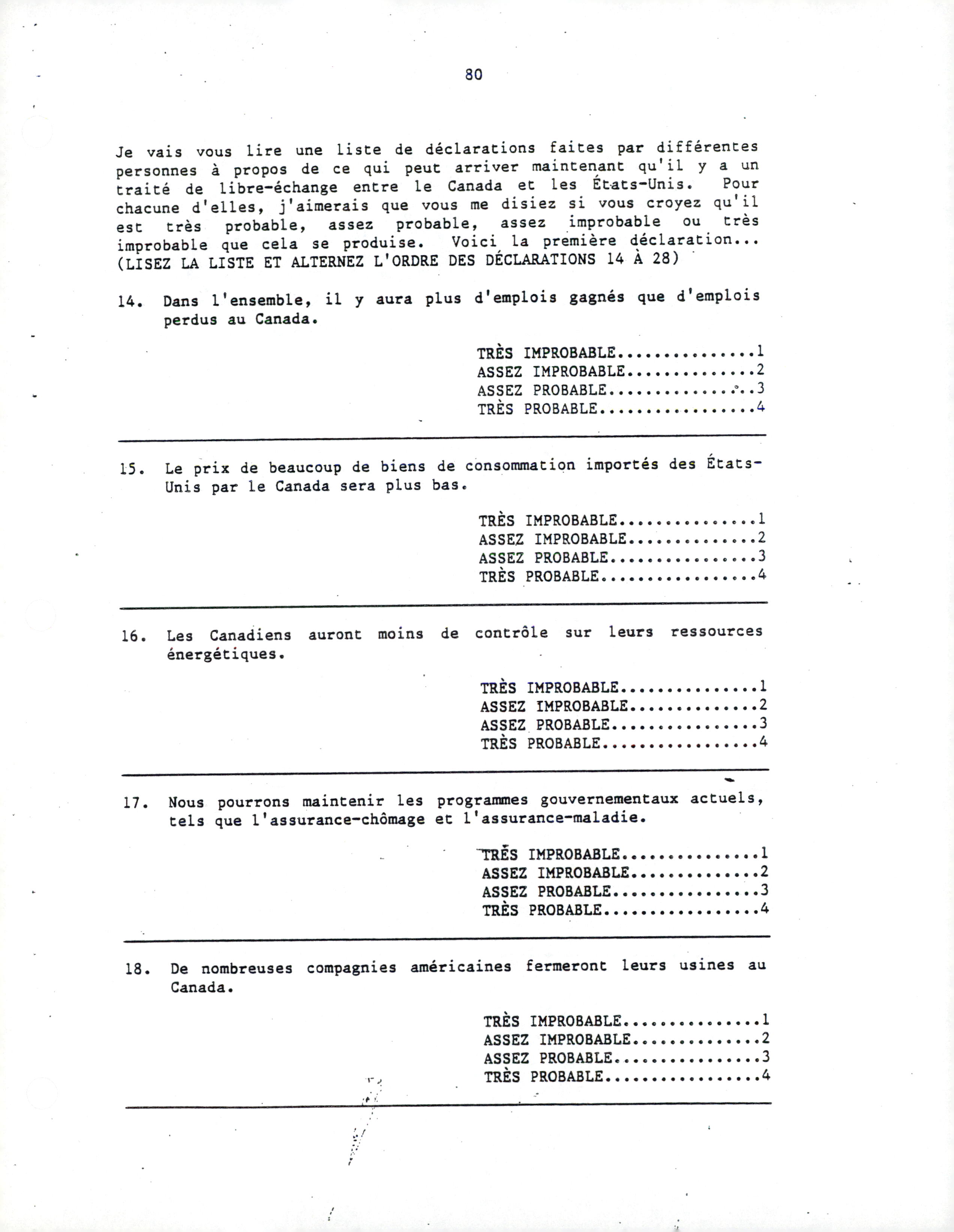 Rapport au Ministère des affaires extérieures sur les attitudes à l'égard de l'Accord de libre-échange Canada-E.-U. 1987-10