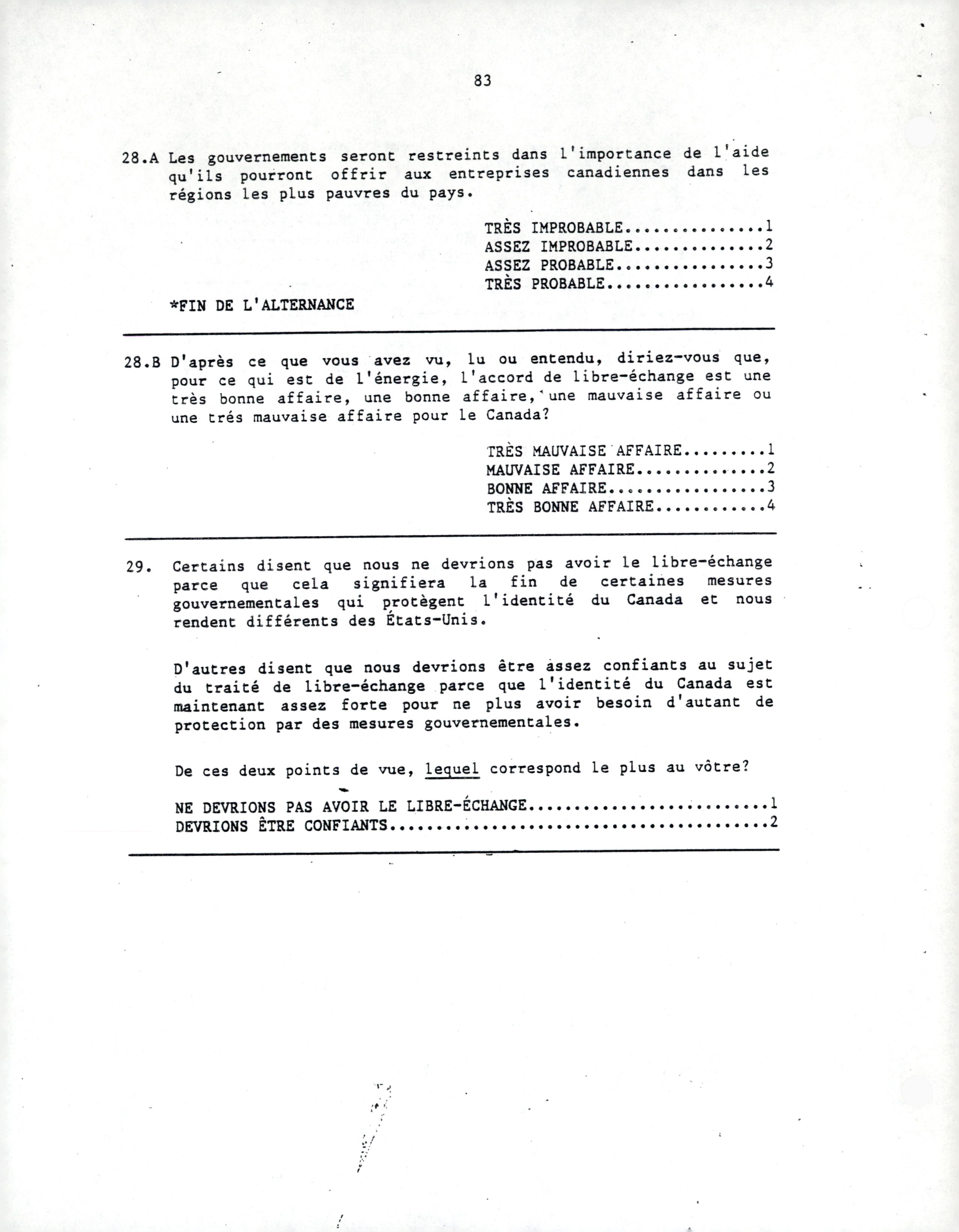 Rapport au Ministère des affaires extérieures sur les attitudes à l'égard de l'Accord de libre-échange Canada-E.-U. 1987-10