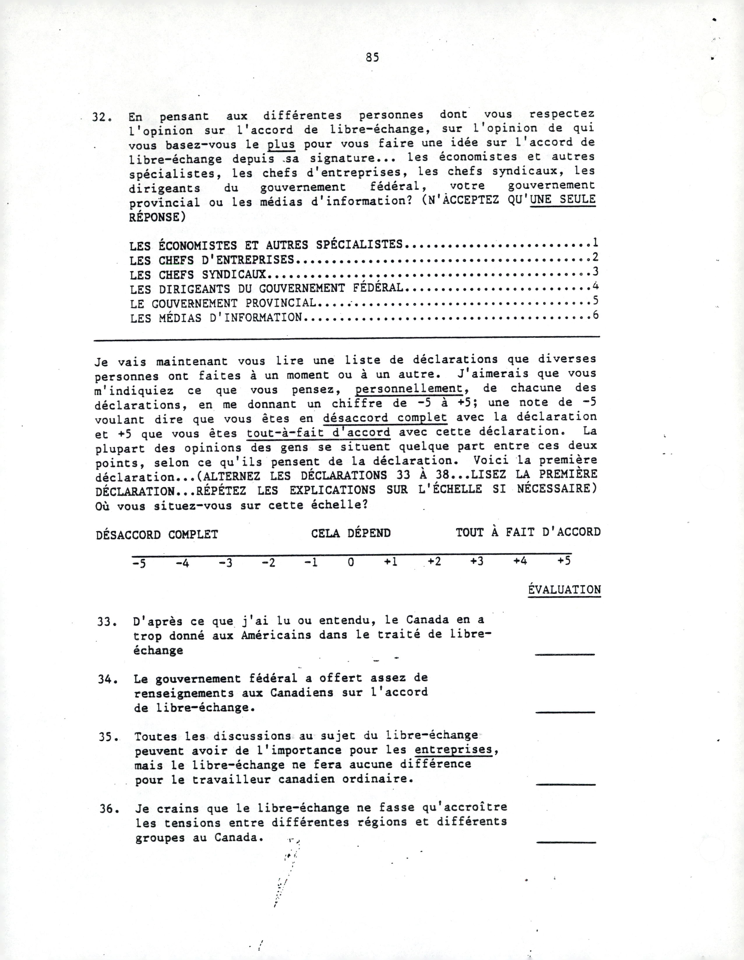 Rapport au Ministère des relations extérieures sur les attitudes à l'égard de l'Accord de libre-échange Canada-É-U. / Decima Research. -- : Oct. 1987