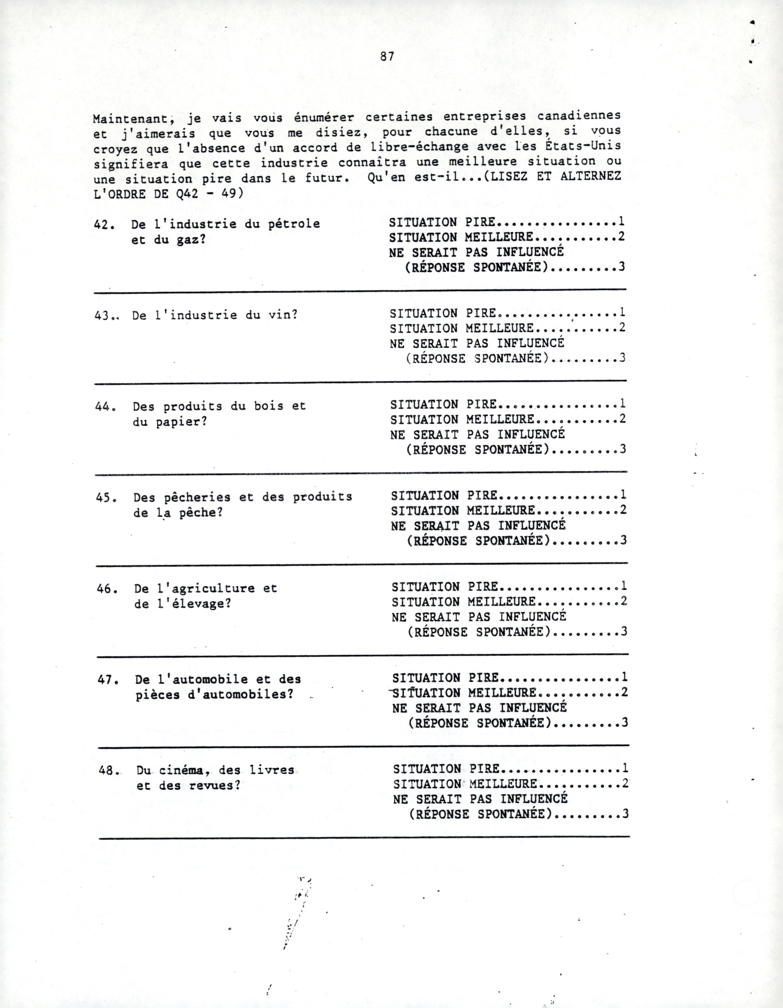 Rapport au Ministère des affaires extérieures sur les attitudes à l'égard de l'Accord de libre-échange Canada-E.-U. 1987-10