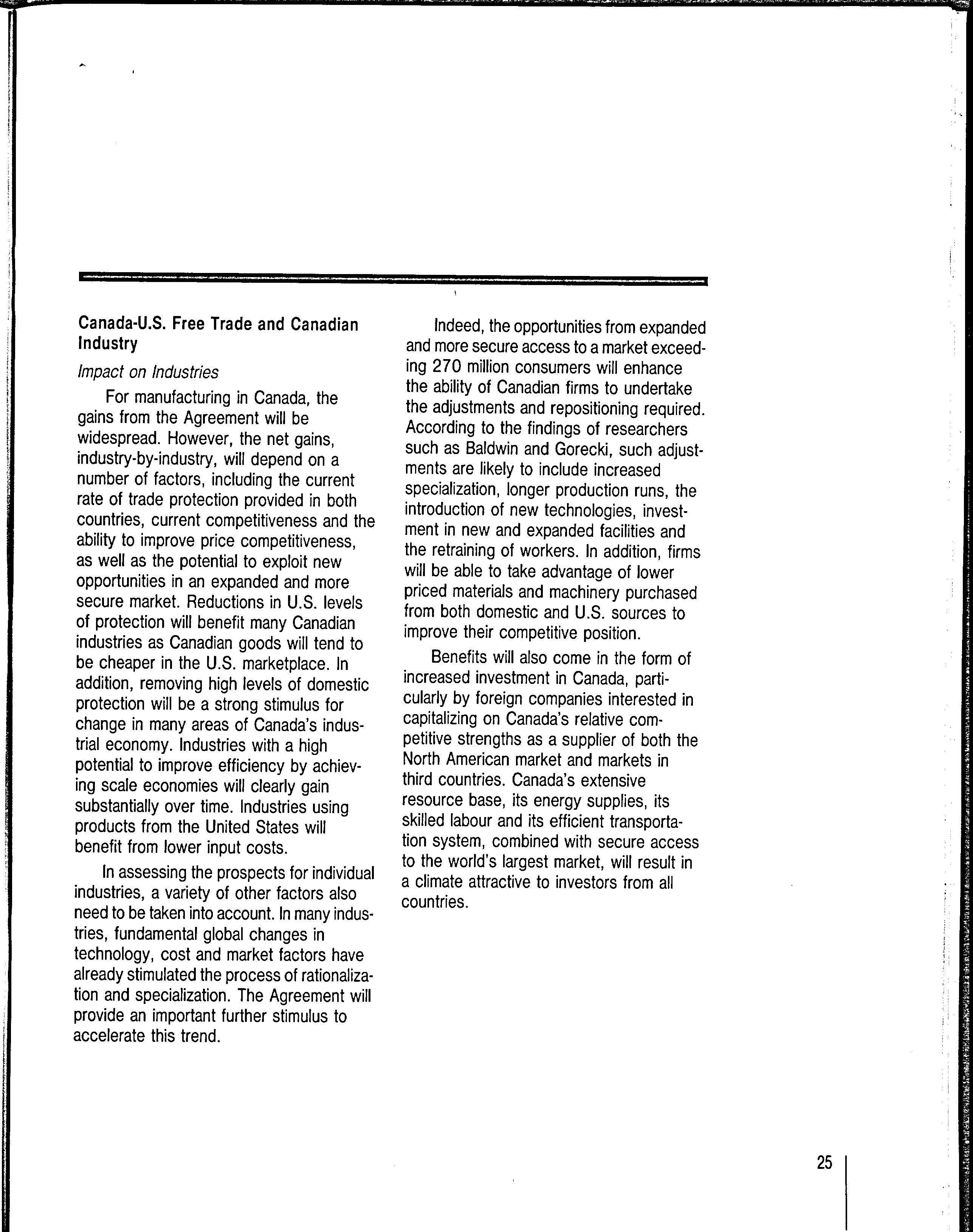 Canada-U.S. Free Trade Agreement and industry : an assessment.