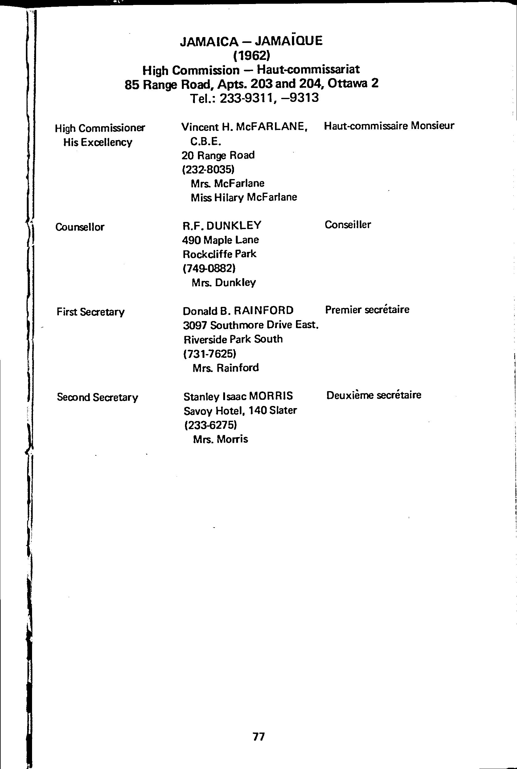 Diplomatic corps and consular and other representatives in Canada = Corps diplomatique et représentants consulaires et autres au Canada. Juin 1969