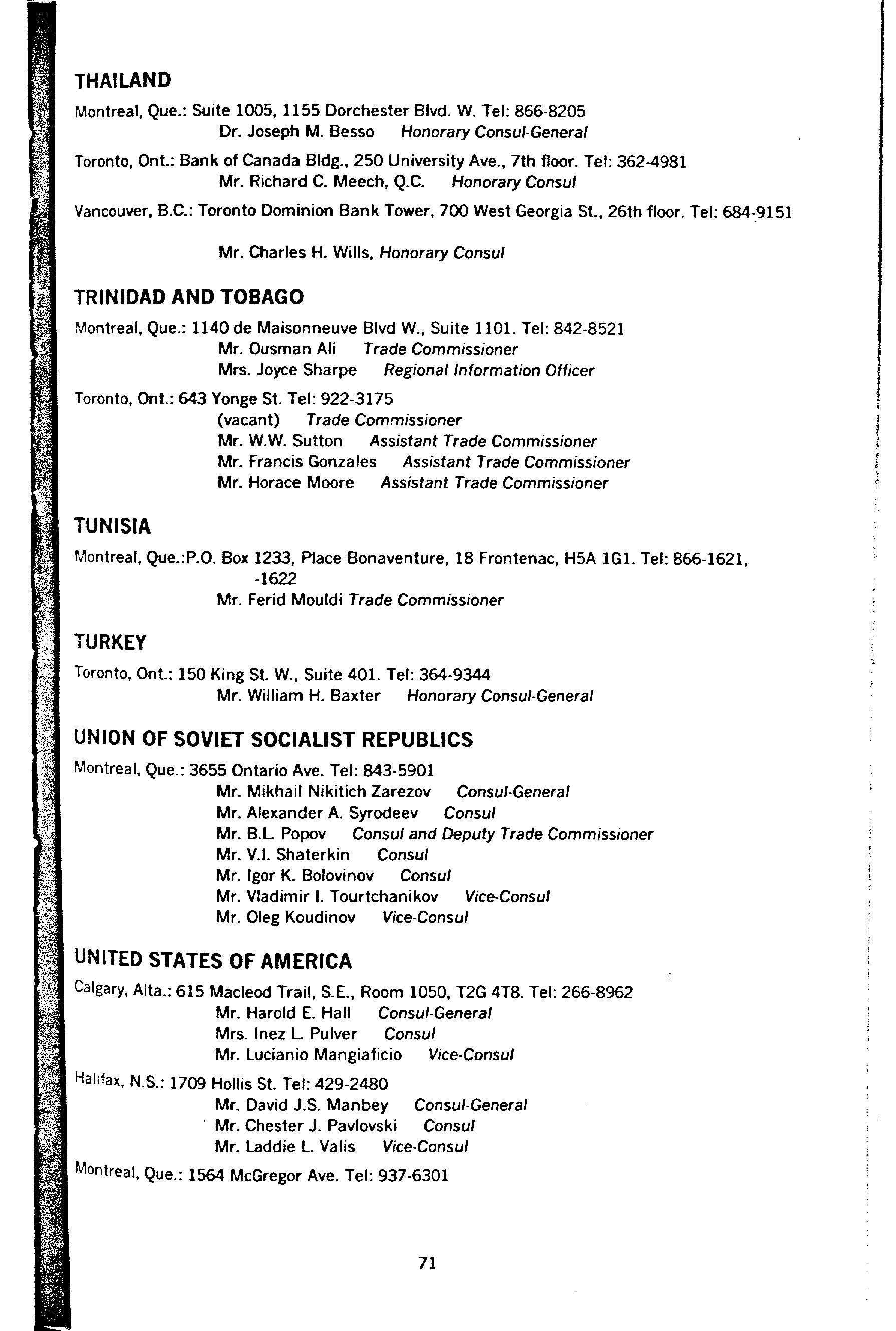 Diplomatic corps and consular and other representatives in Canada = Corps diplomatique et représentants consulaires et autres au Canada. Févr. 1974