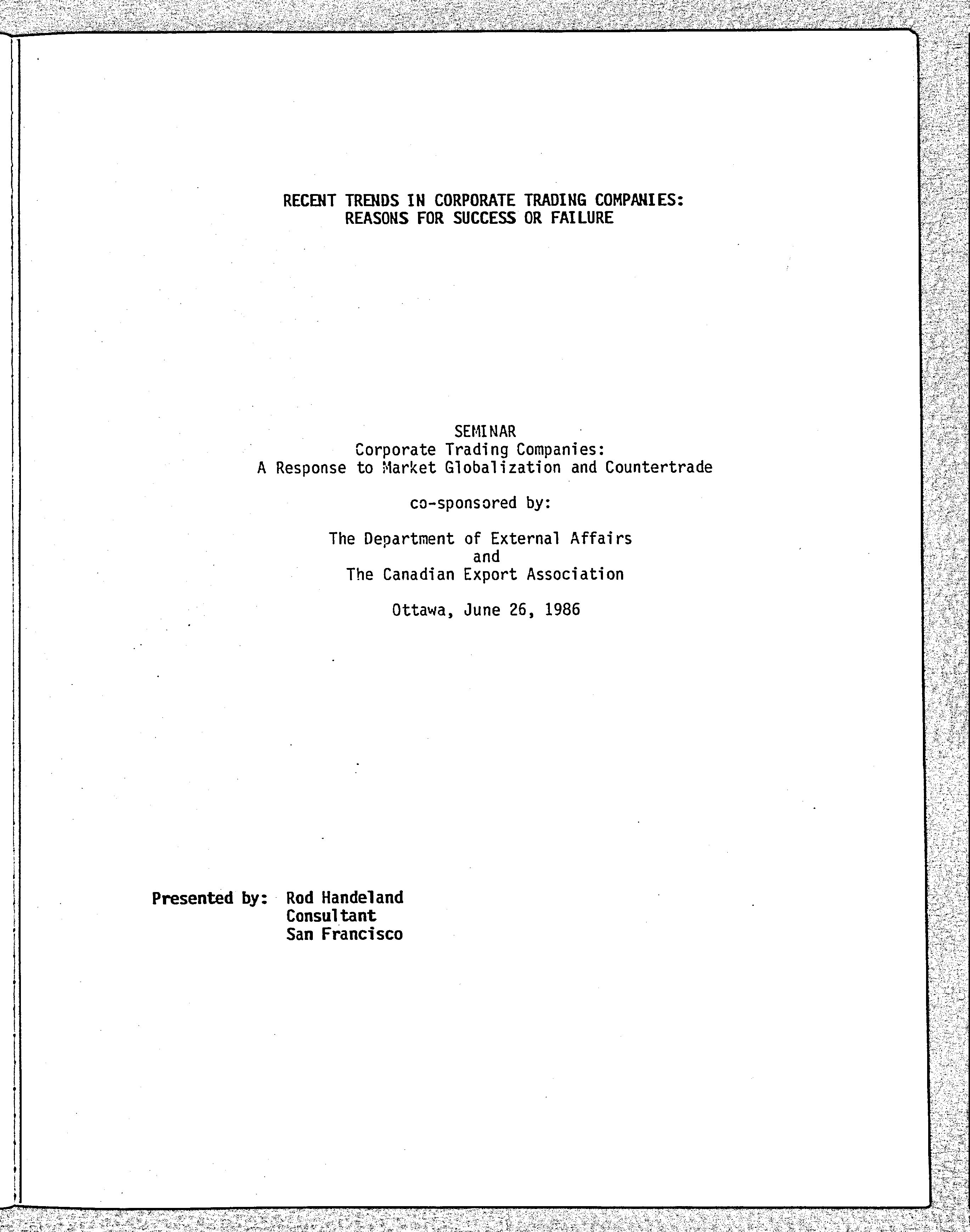 Co-sponsored by the Department of External Affairs and the Canadian Export Association, June 26, 1986.