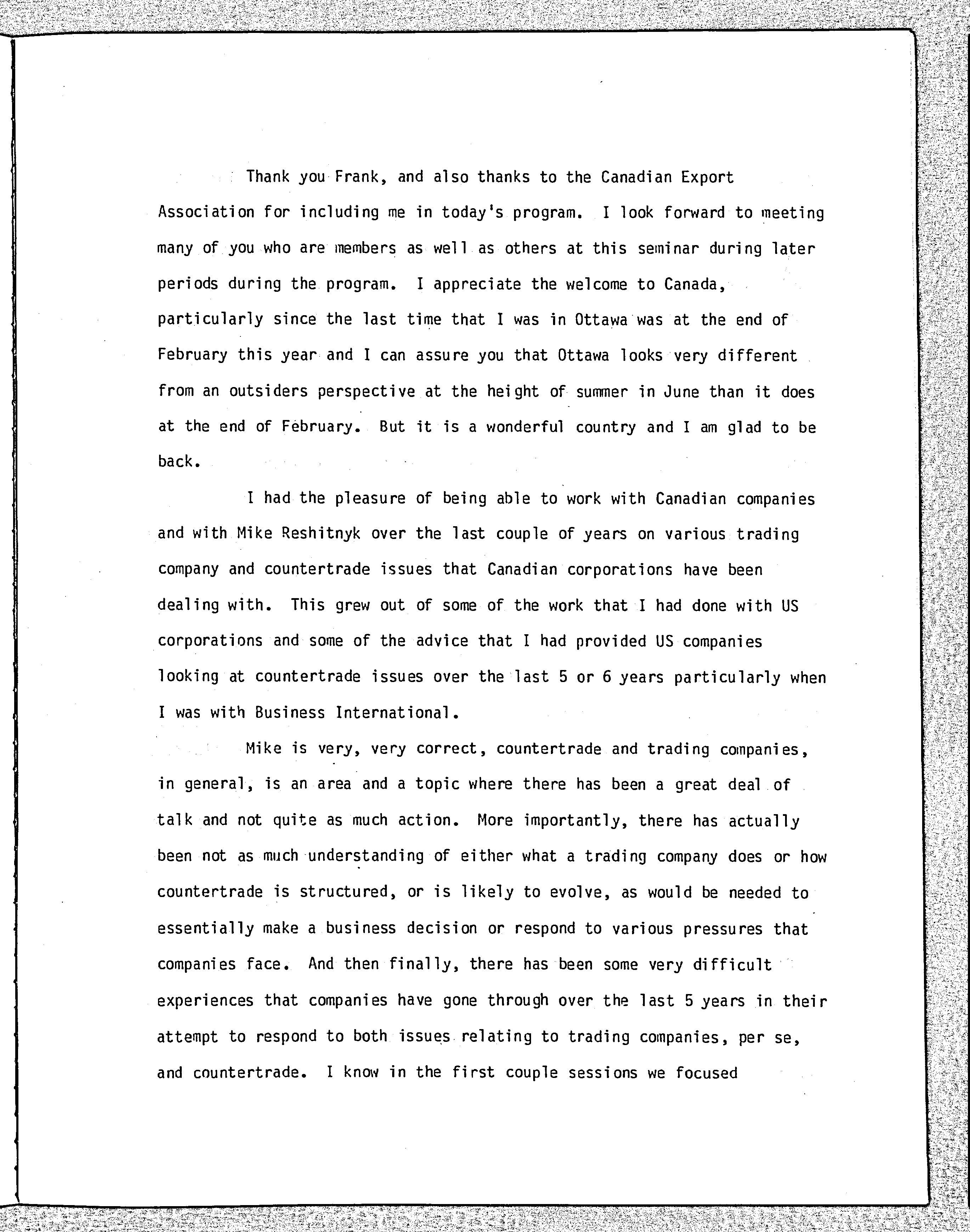 Co-sponsored by the Department of External Affairs and the Canadian Export Association, June 26, 1986.