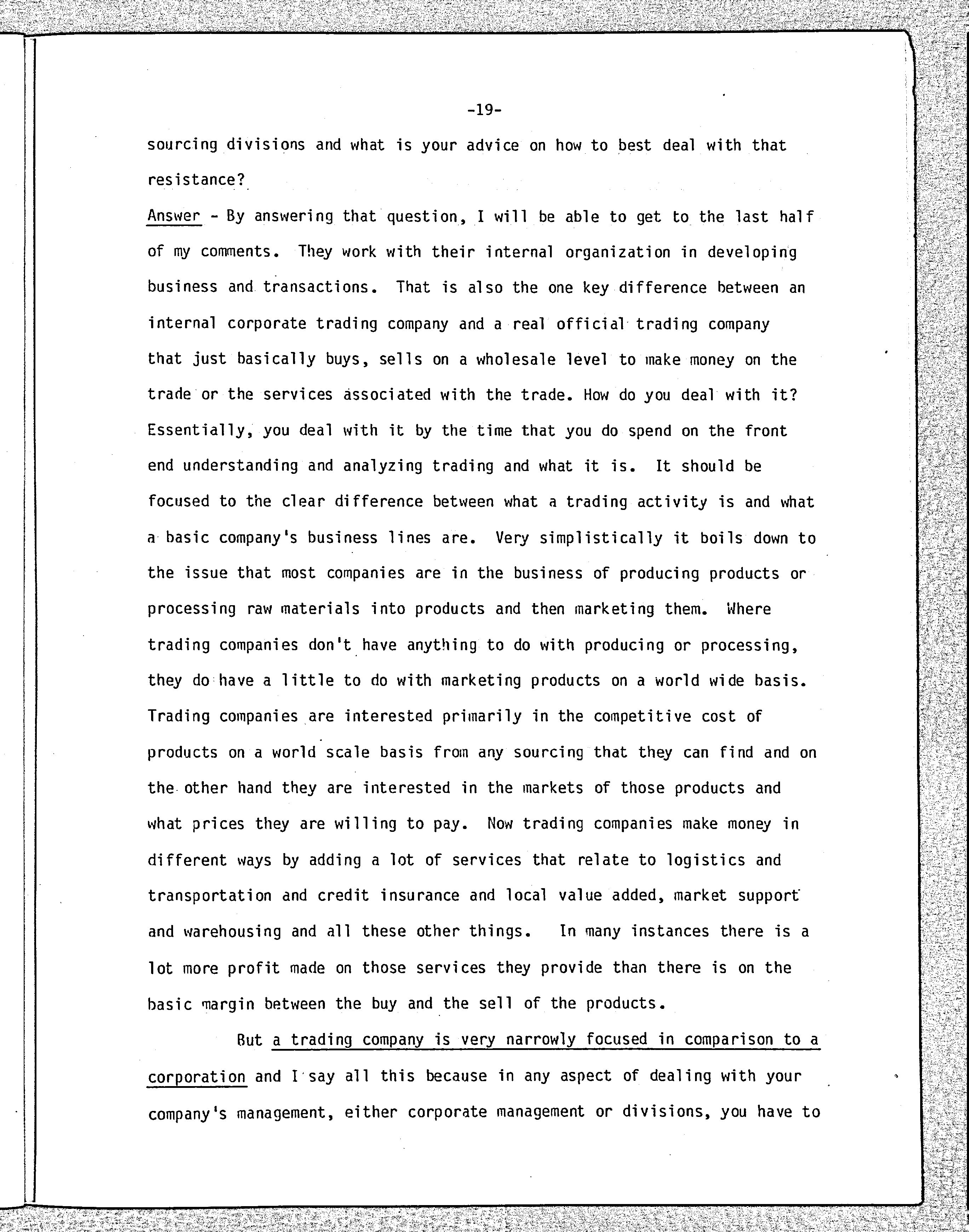 "Corporate trading companies :