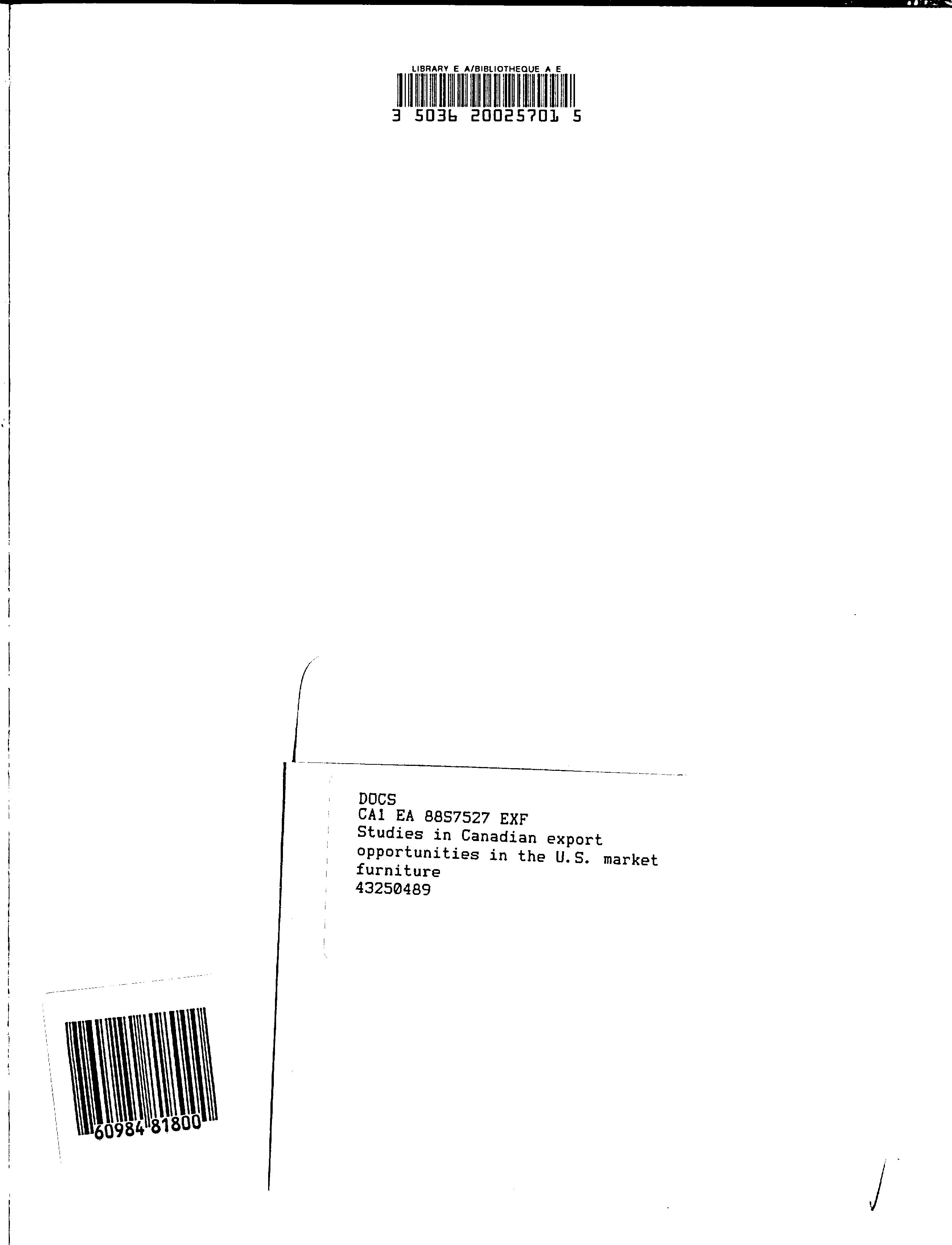 Studies in Canadian export opportunities in the U.S. market : furniture