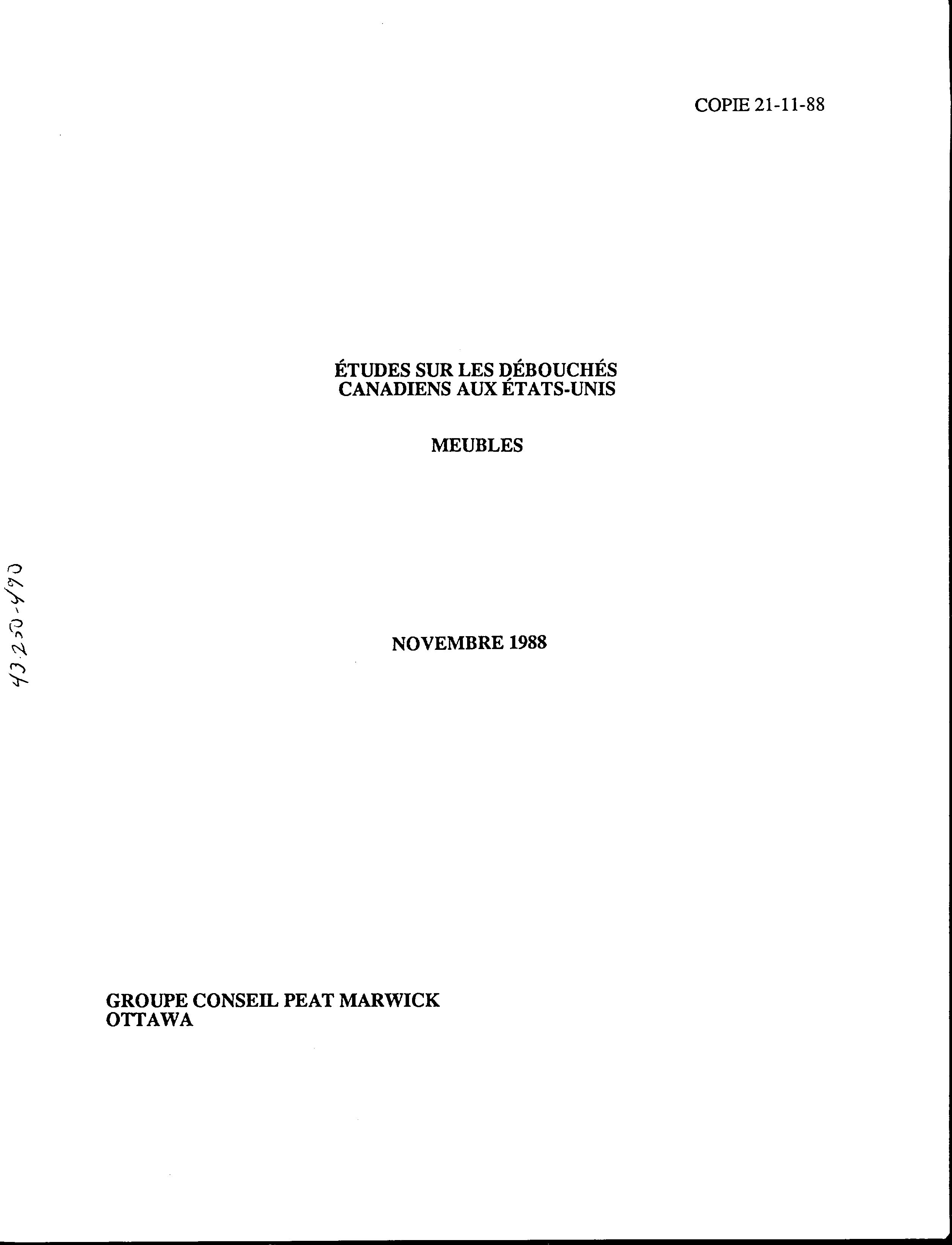 Studies in Canadian export opportunities in the U.S. market : furniture / Peat Marwick Consulting Group [for] External Affairs Canada.