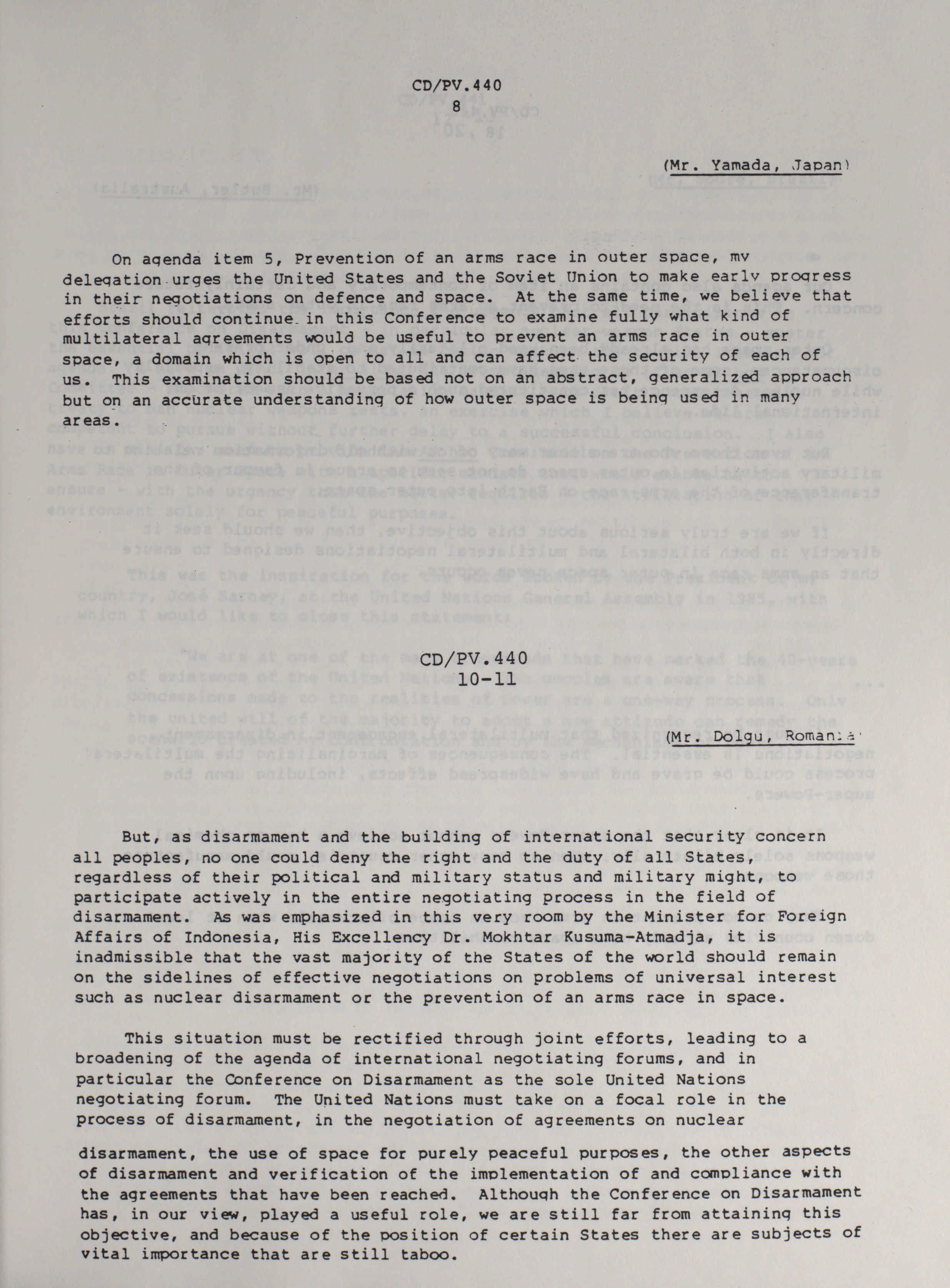 Prevention of an arms race in outer space : final records (PV) and working papers (WP) / Arms Control and Disarmament Division of the Department of External Affairs, Ottawa, Canada.