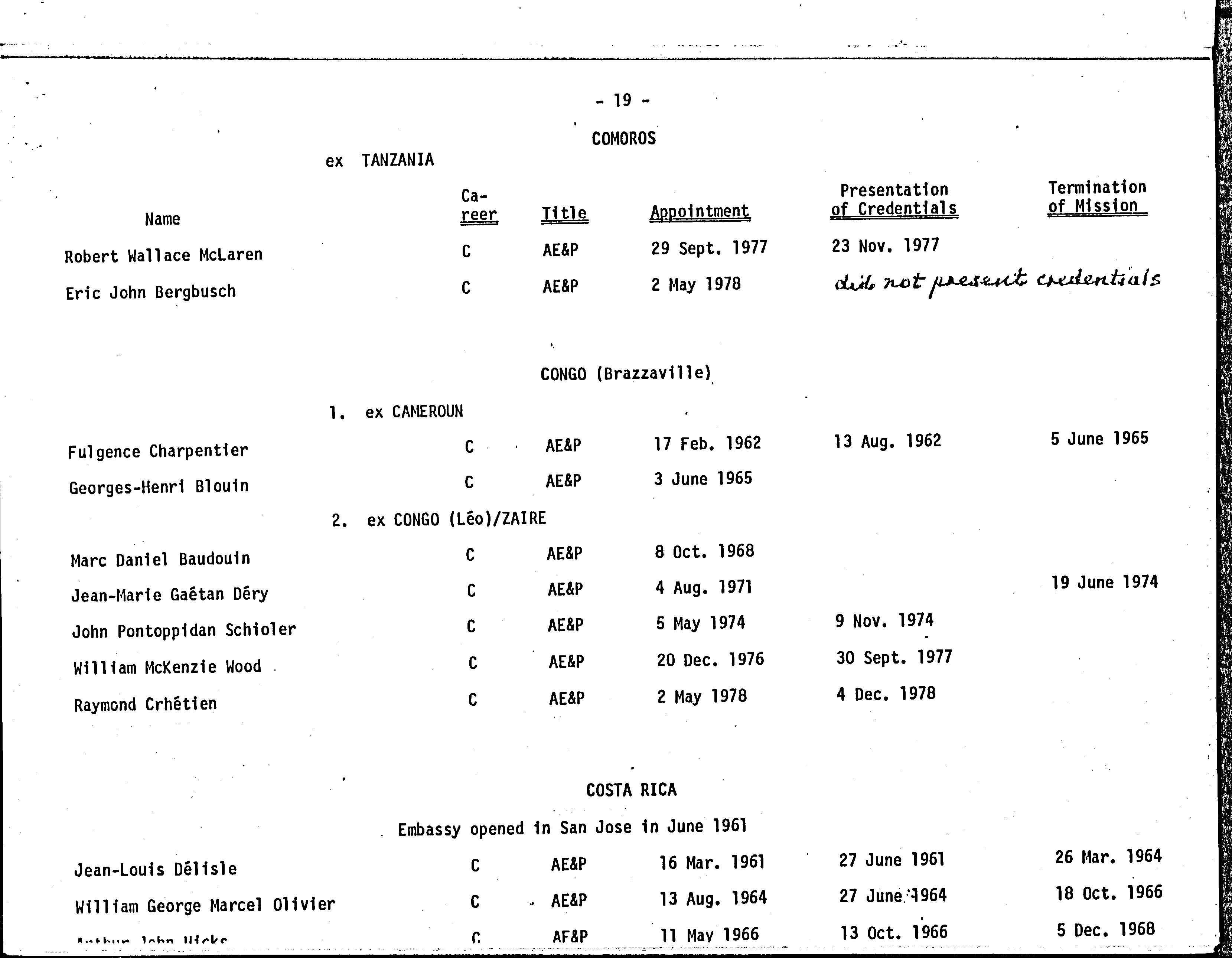 Heads of missions from 1880 to 1980 / External Affairs Canada.