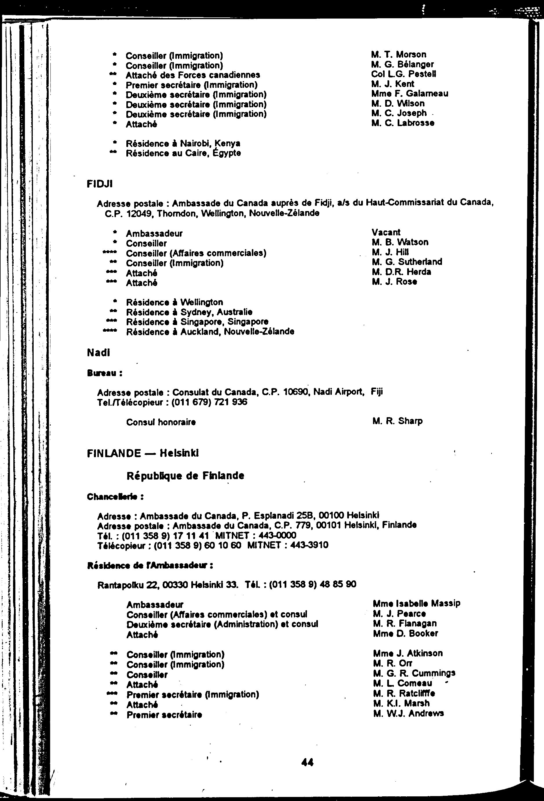 Représentants du Canada à l'étranger / Ministère des affaires extérieures. Déc. 1995