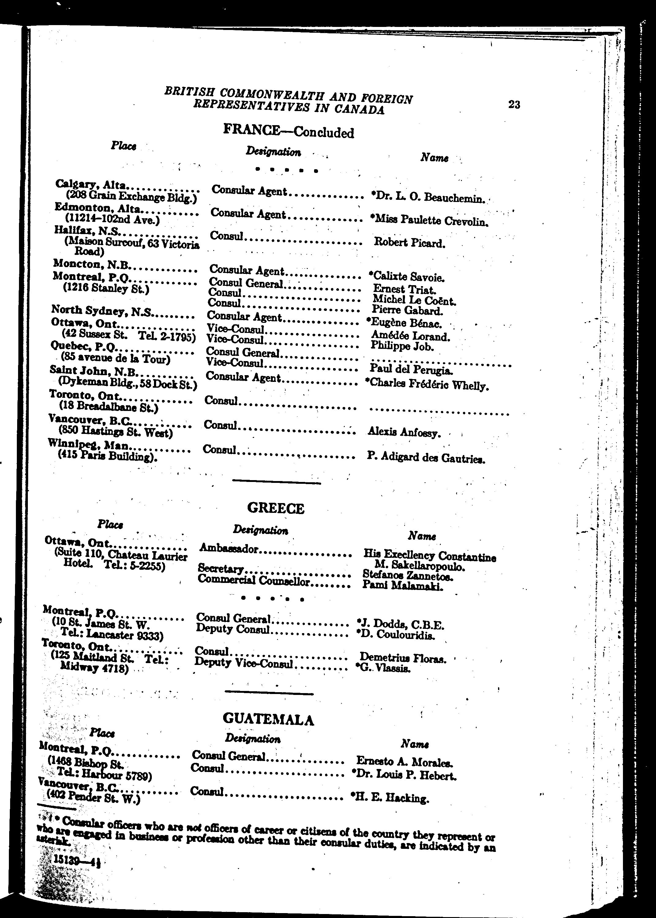 Representatives in Canada of the British Commonwealth and foreign governments July 1942; October 1946.