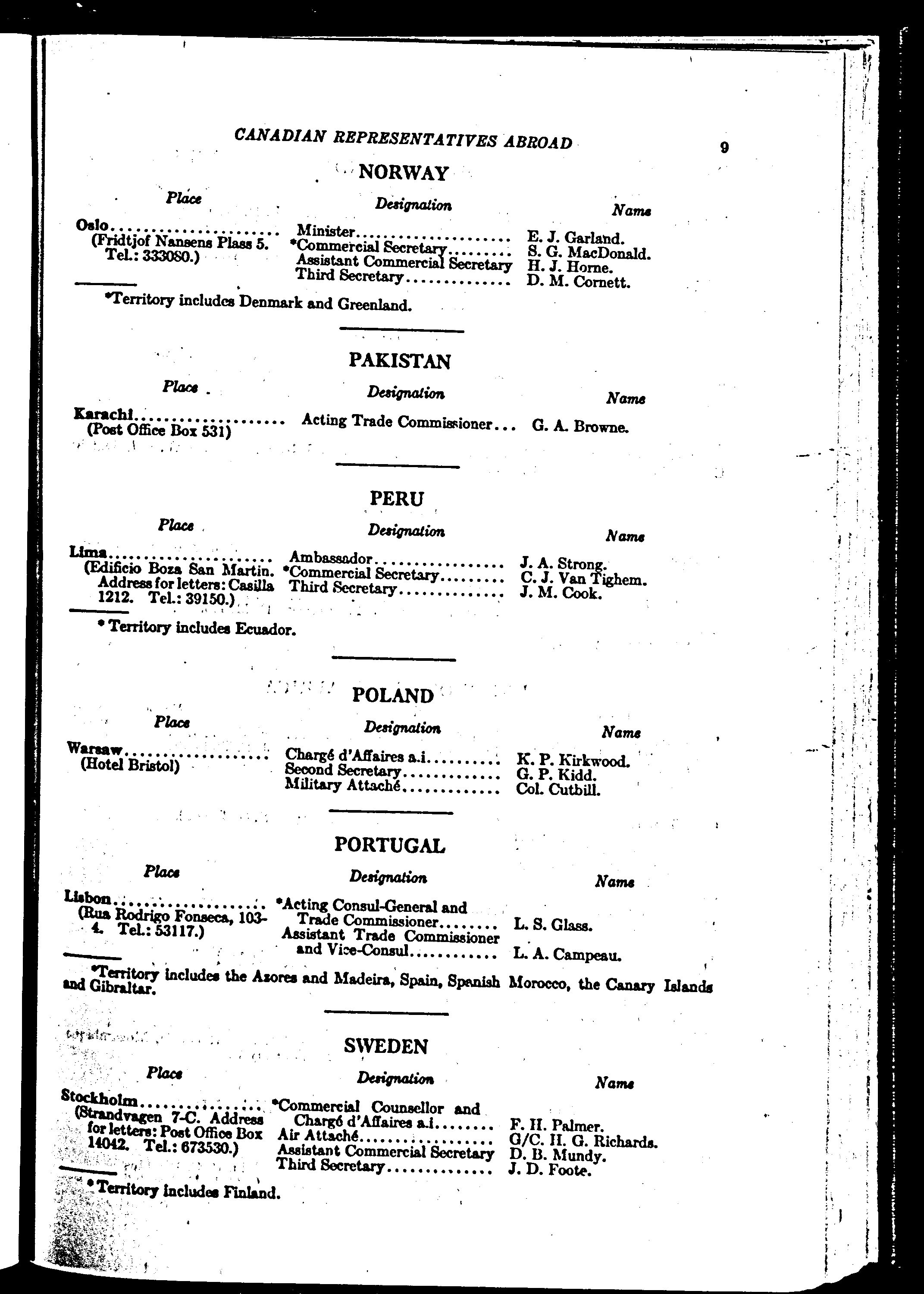 Representatives in Canada of the British Commonwealth and foreign governments July 1942; October 1946.