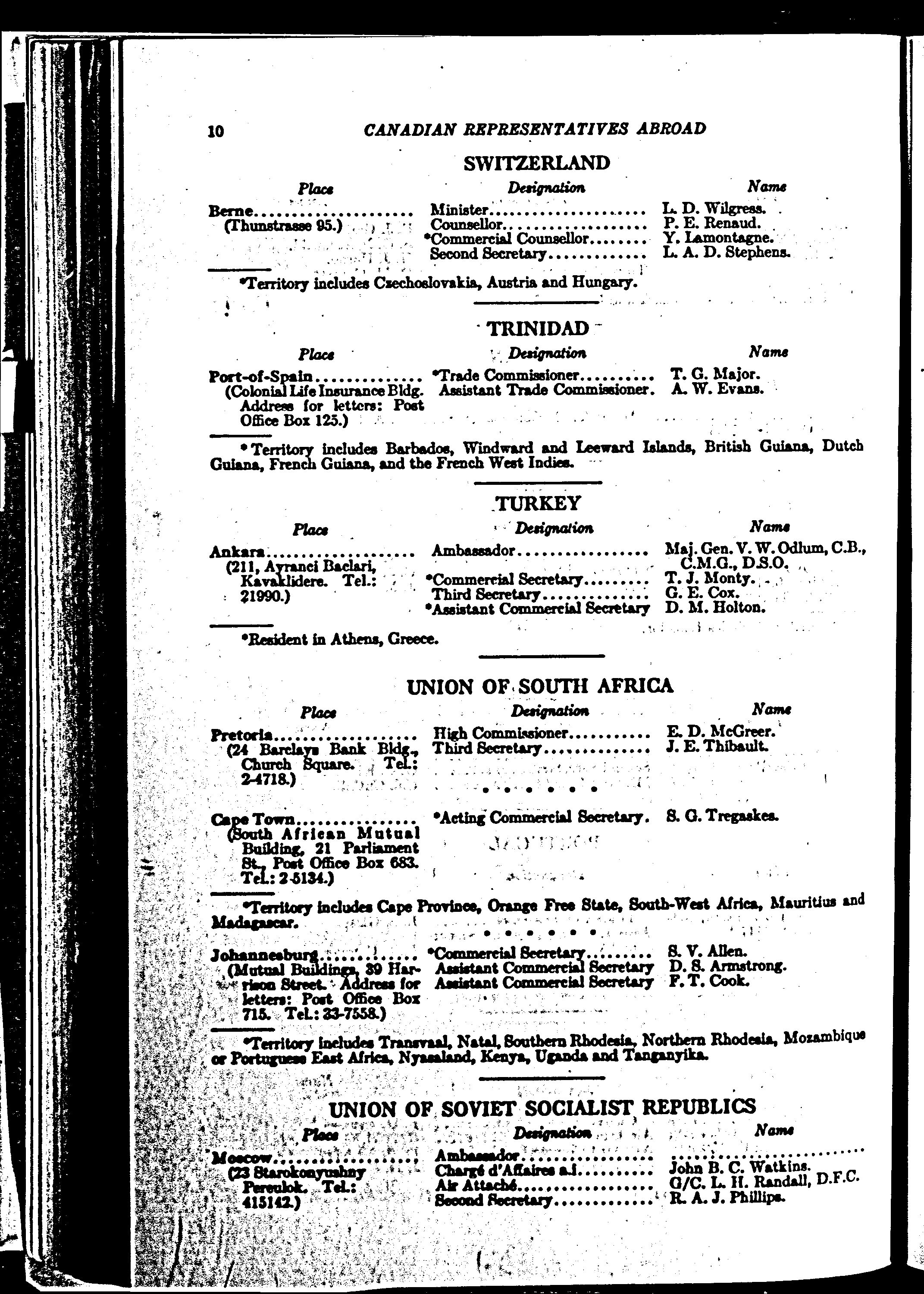 Representatives in Canada of the British Commonwealth and foreign governments July 1942; October 1946.