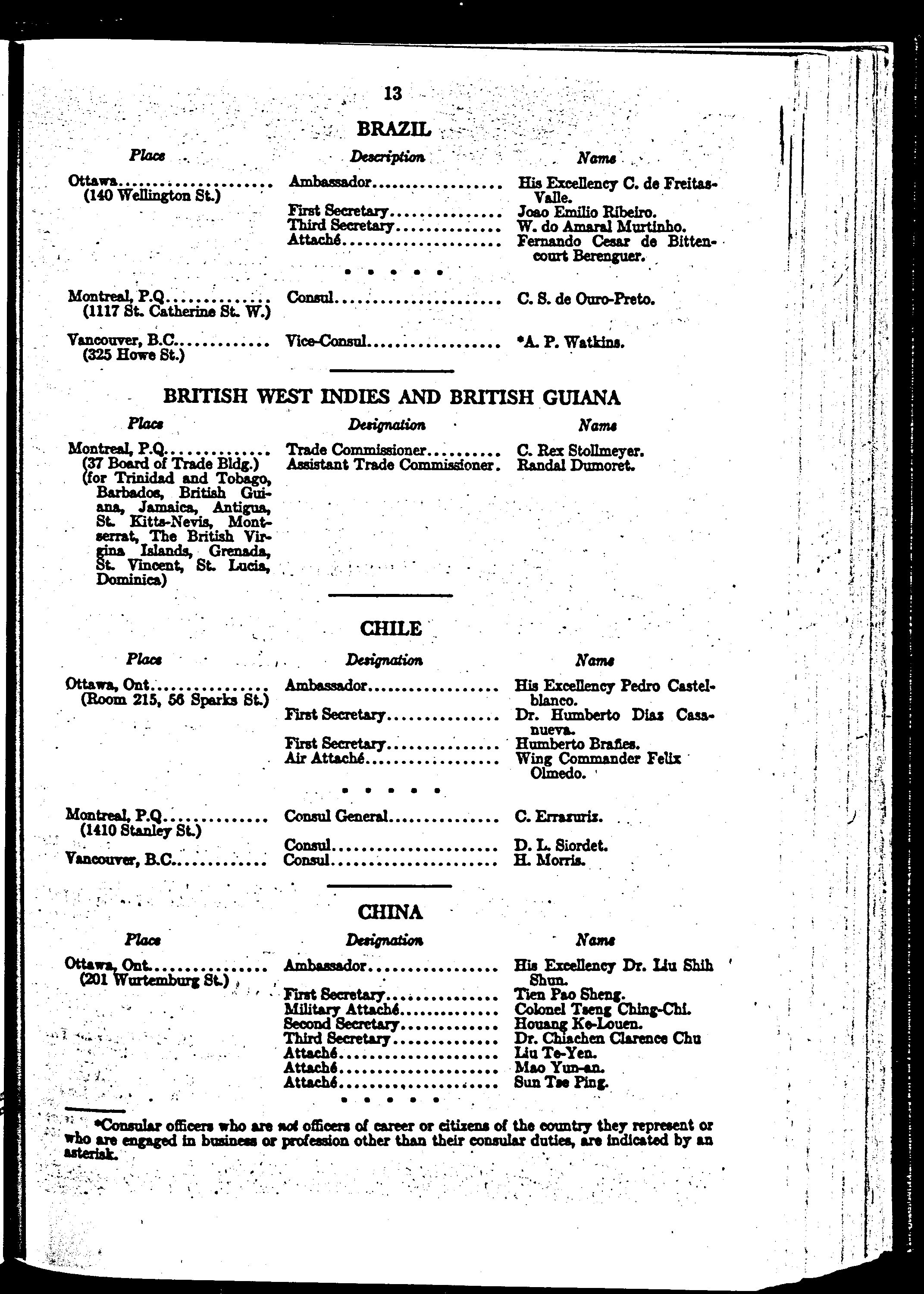 Canadian representatives abroad and British Commonwealth and foreign representatives in Canada 15 mars 1948-15 mars 1949.