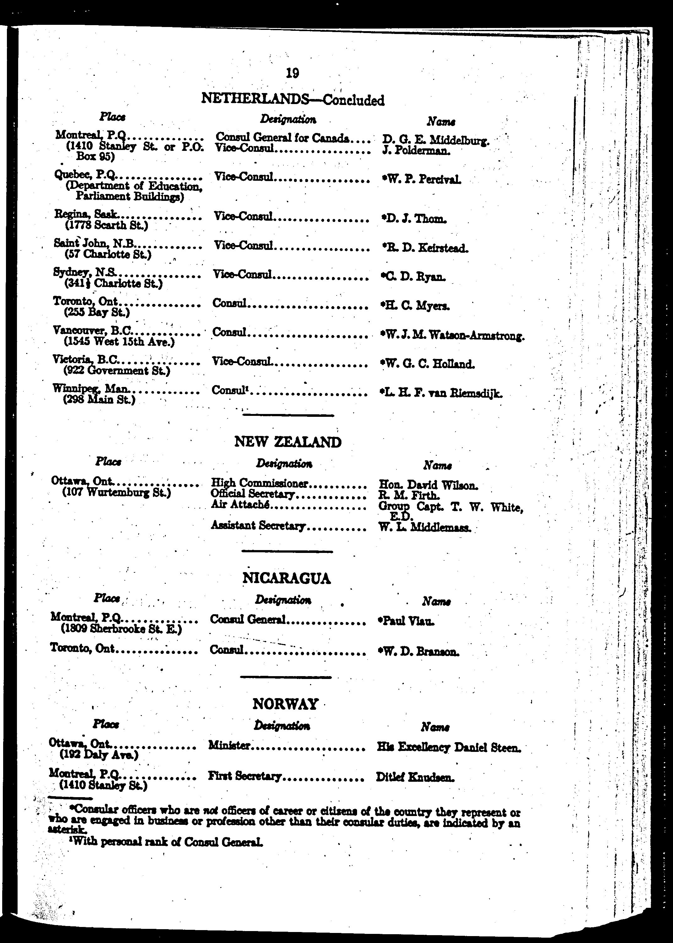 Représentants du Canada à l'extérieur et représentants au Canada du Commonwealth britannique et de l'etranger
