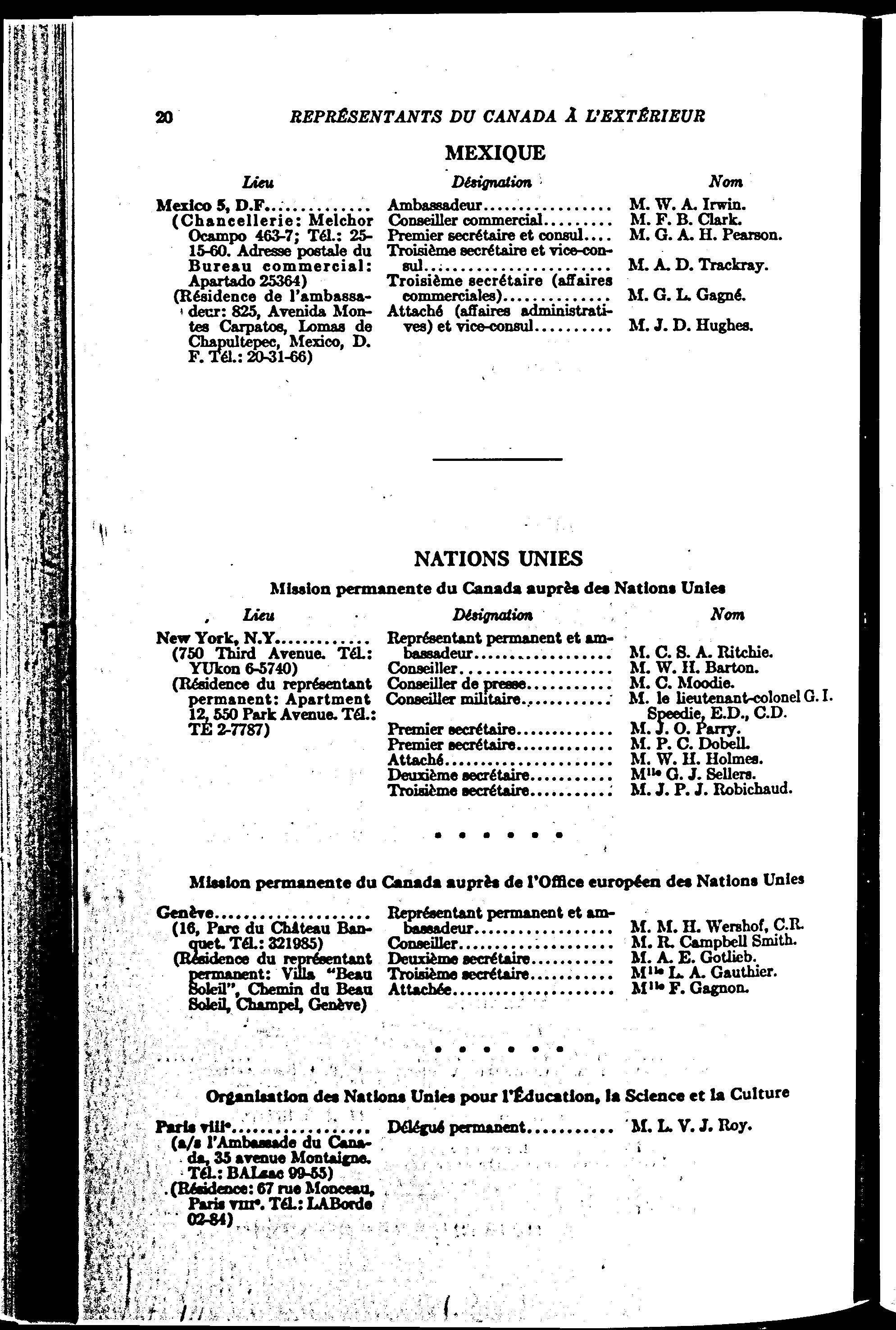 Canadian representatives abroad and representatives of other countries in Canada / Department of External Affairs. 1961