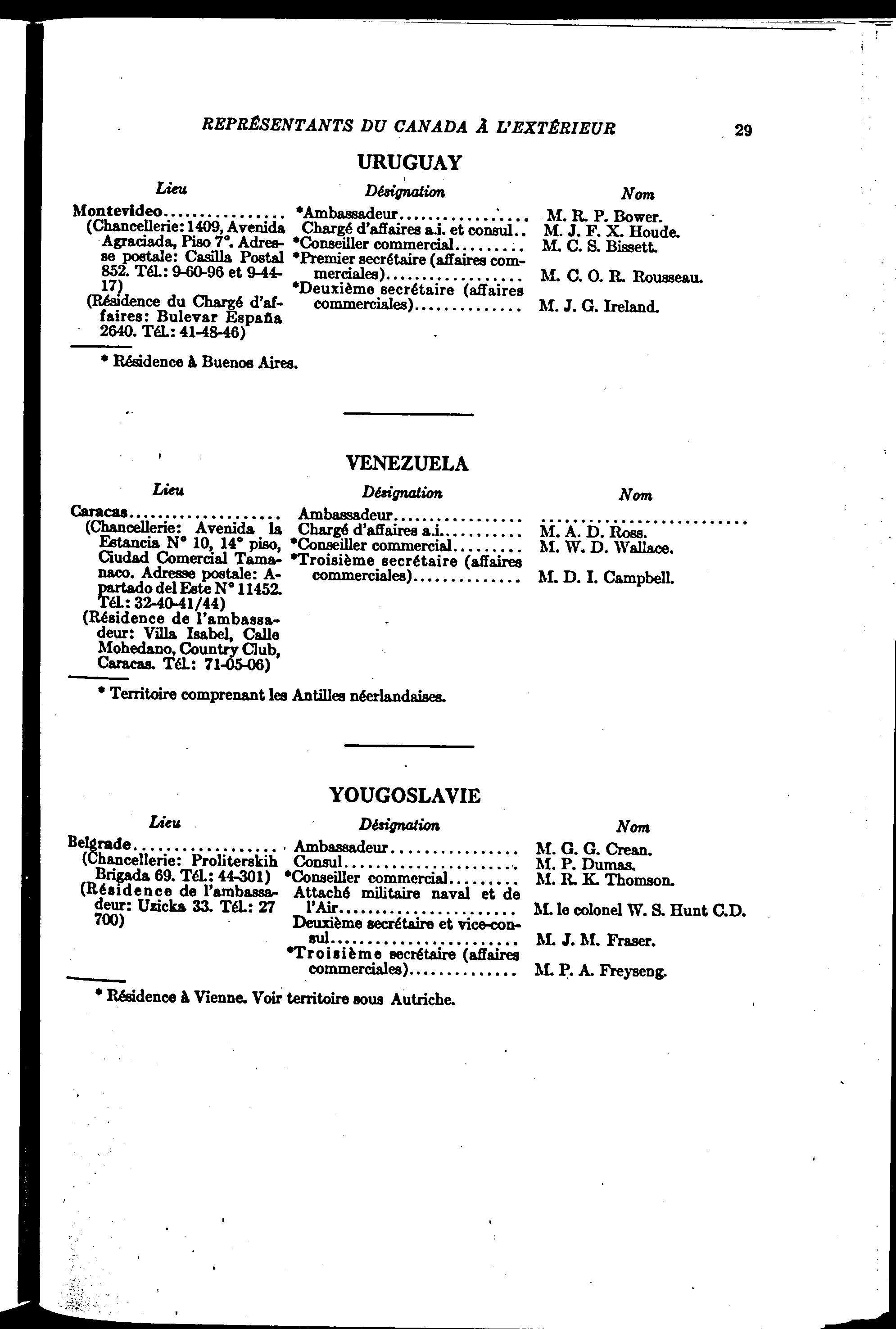 Canadian representatives abroad and representatives of other countries in Canada / Department of External Affairs. 1961