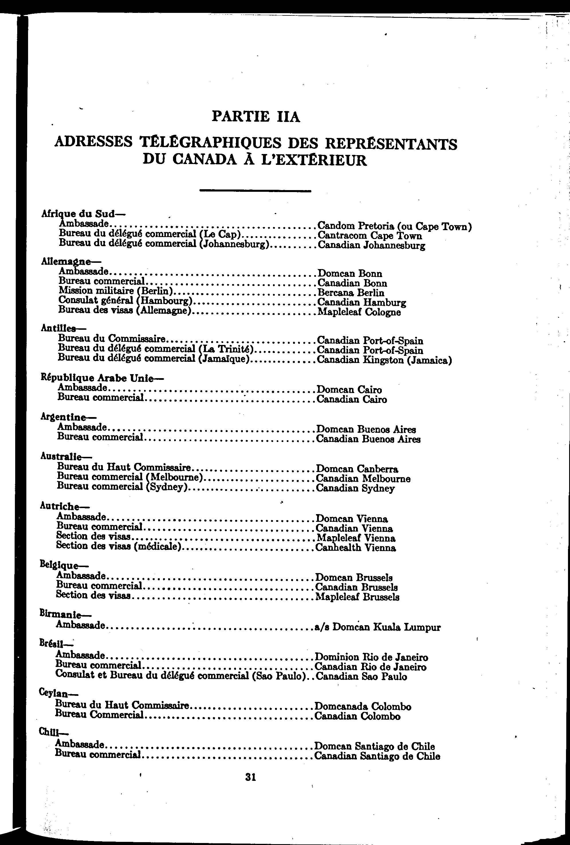 Canadian representatives abroad and representatives of other countries in Canada / Department of External Affairs. 1961