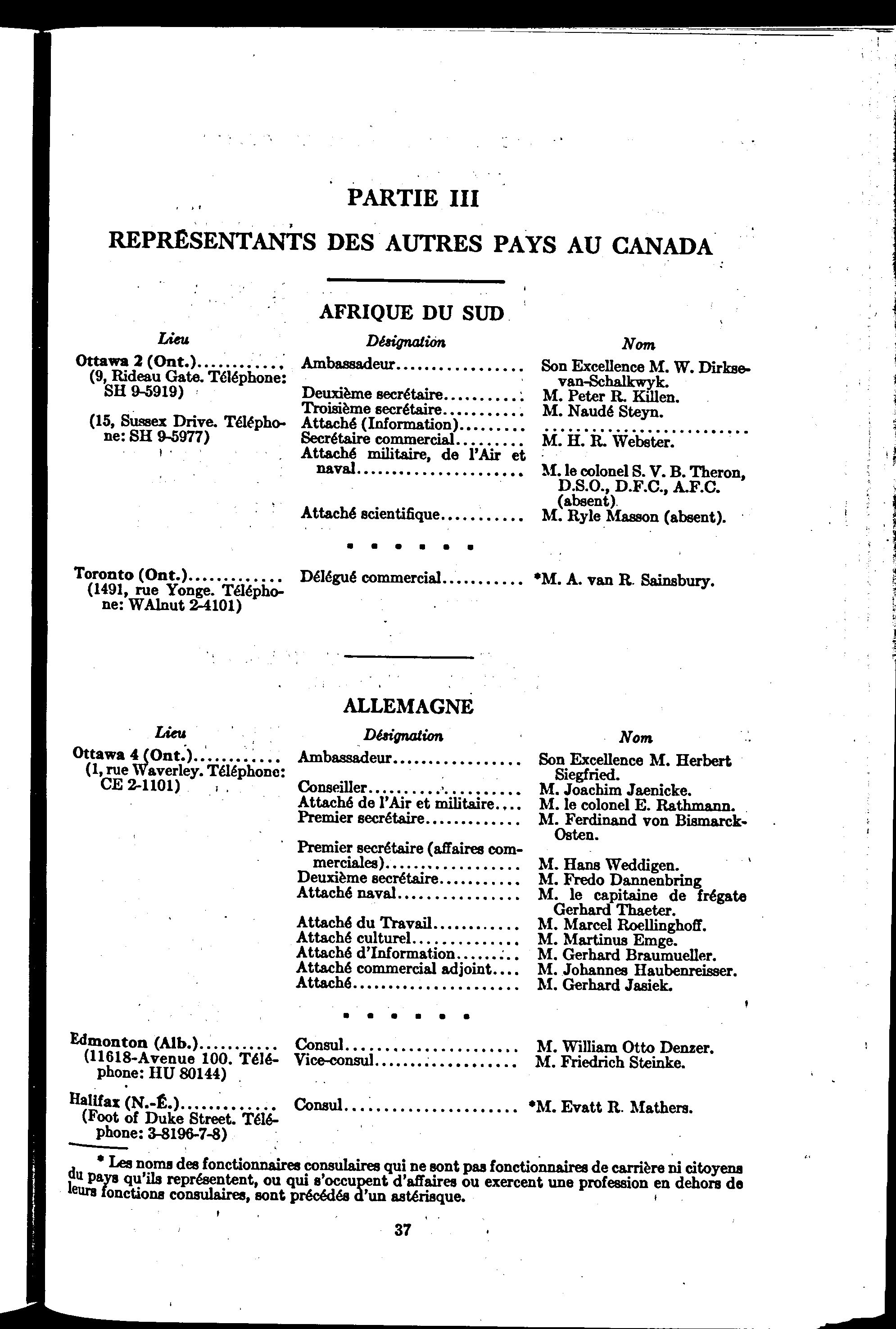 Canadian representatives abroad and representatives of other countries in Canada / Department of External Affairs. 1961