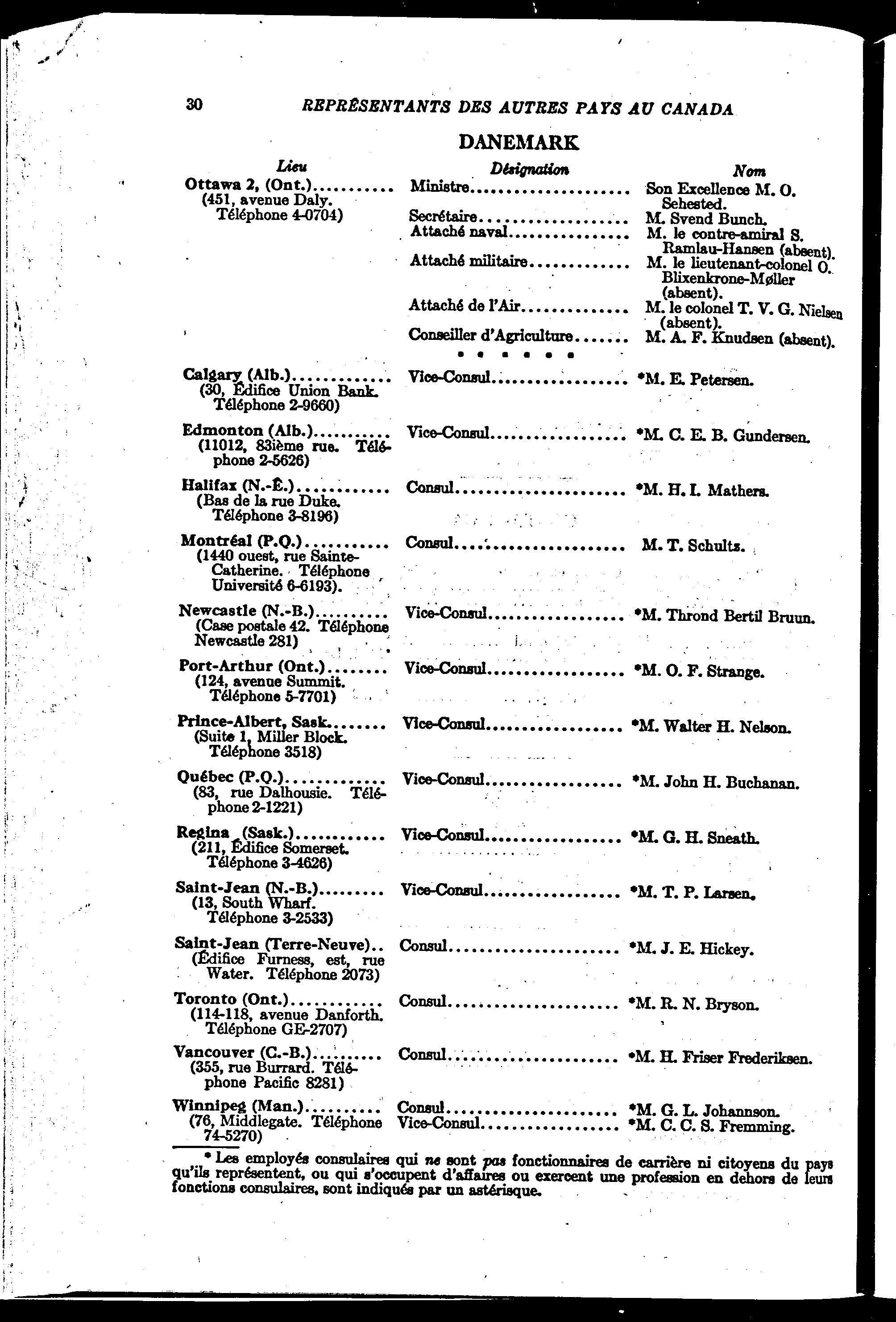 Représentants du Canada à l'extérieur et représentants des autres pays au Canada / Ministère des affaires extérieures. 1955