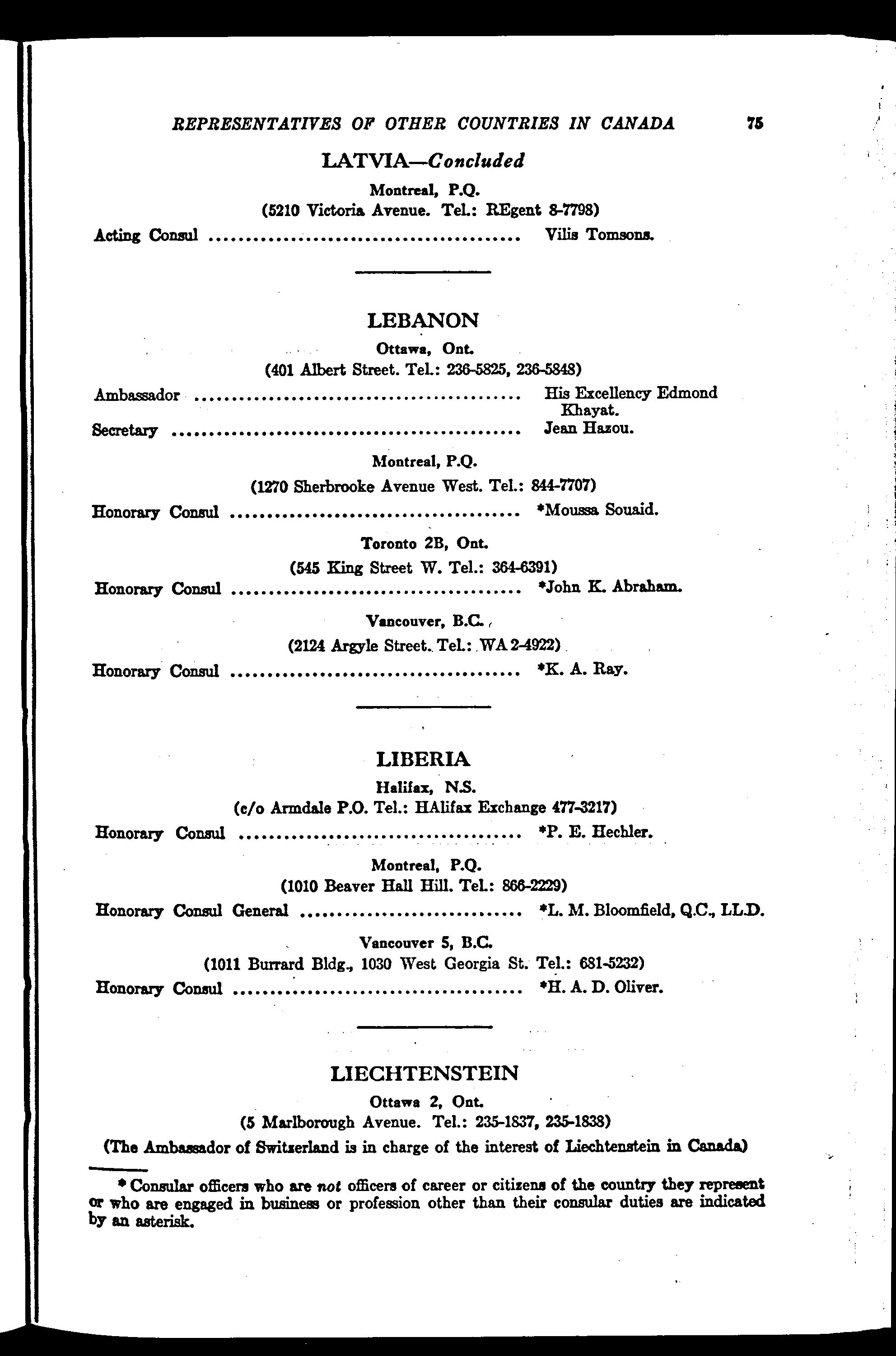 Représentants du Canada à l'extérieur et représentants des autres pays au Canada / Ministère des affaires extérieures. 1965