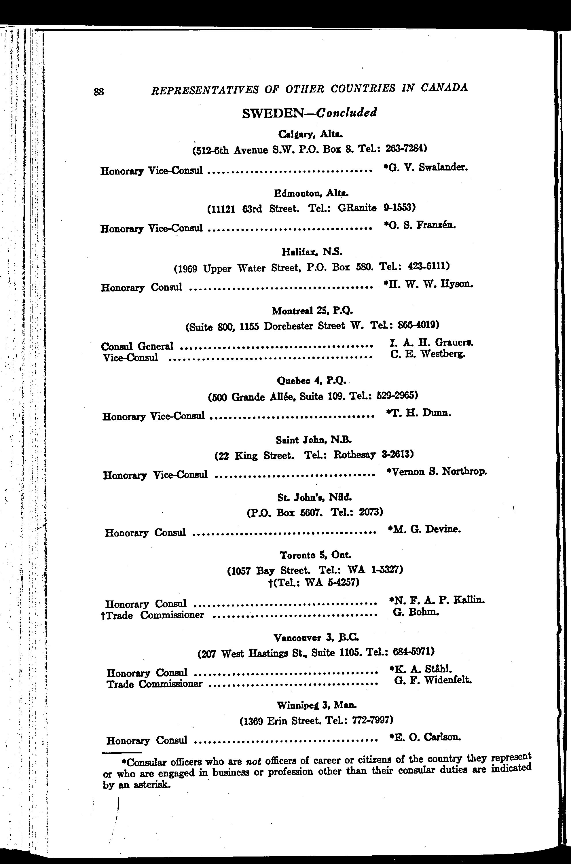 Représentants du Canada à l'extérieur et représentants des autres pays au Canada / Ministère des affaires extérieures. 1965
