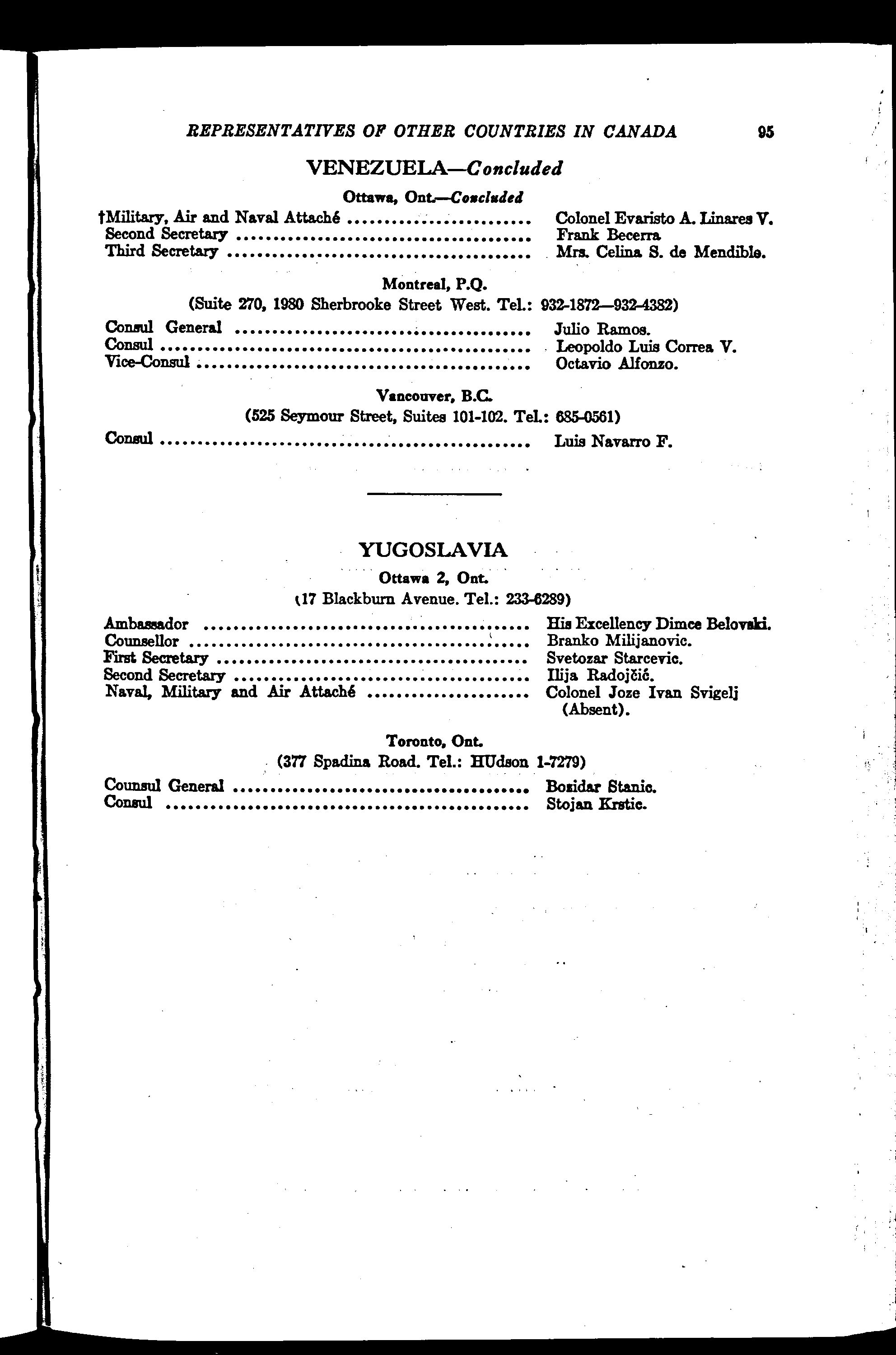 Représentants du Canada à l'extérieur et représentants des autres pays au Canada / Ministère des affaires extérieures. 1965