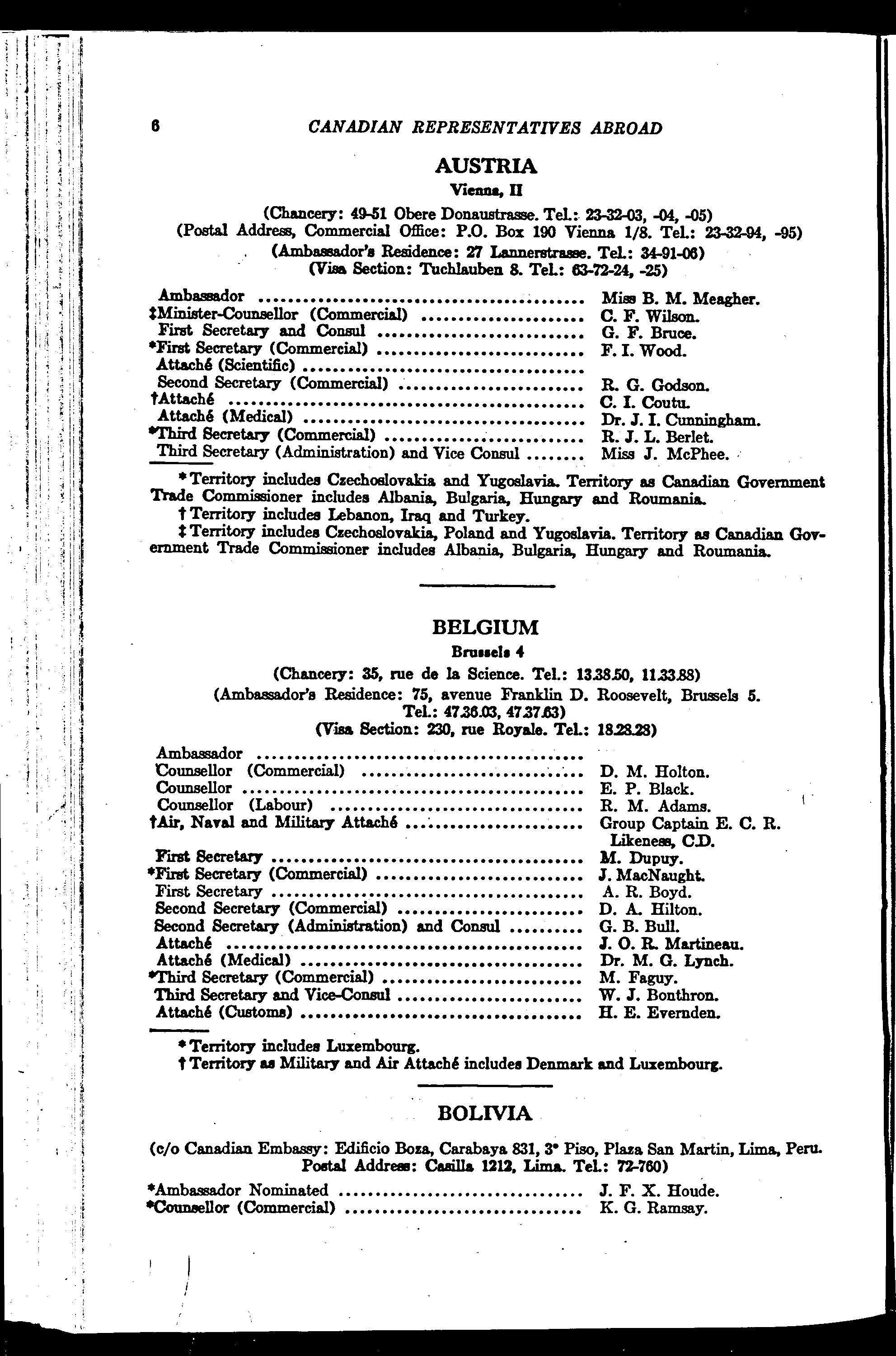 Représentants du Canada à l'extérieur et représentants des autres pays au Canada / Ministère des affaires extérieures. 1965