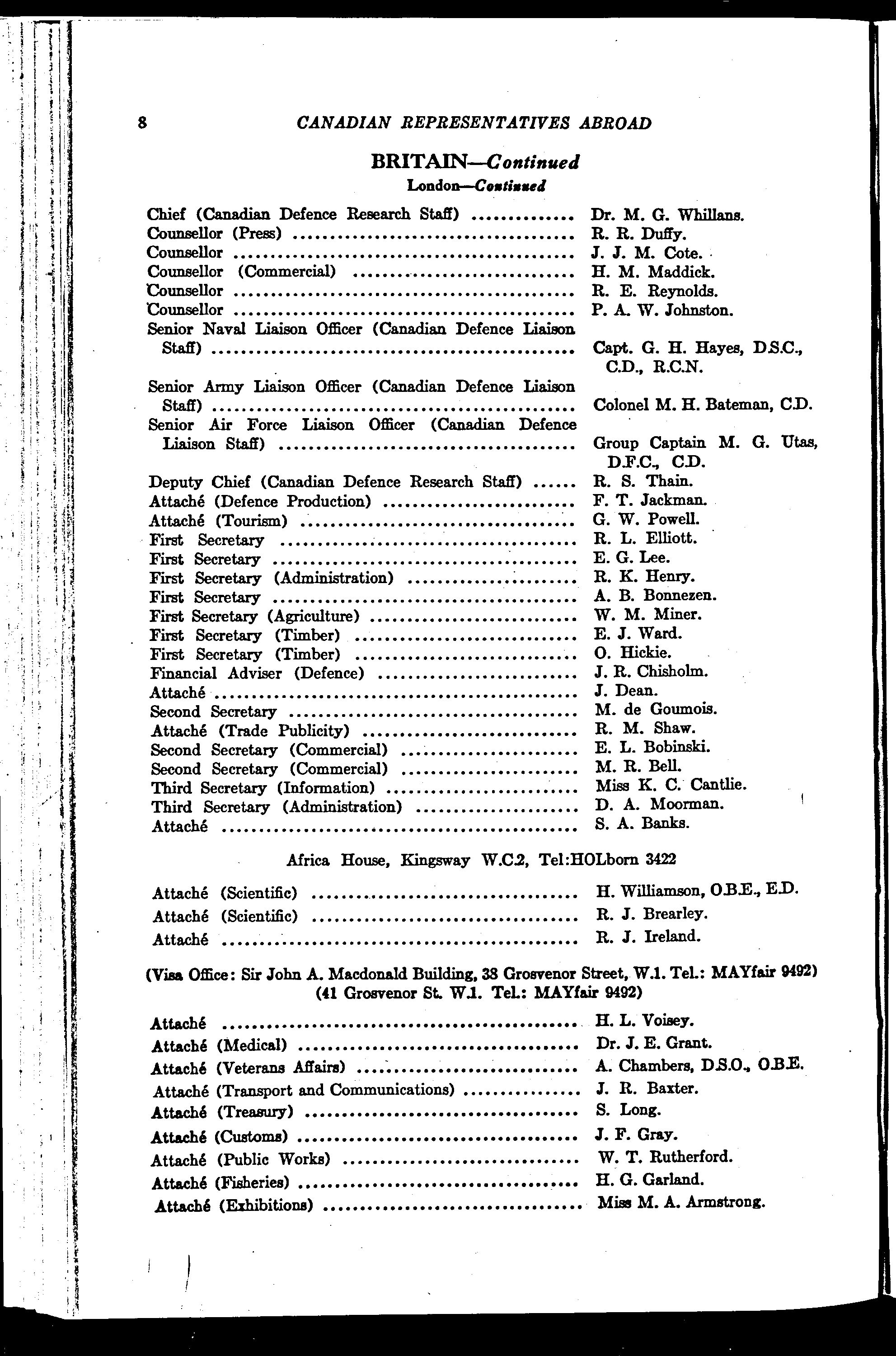 Représentants du Canada à l'extérieur et représentants des autres pays au Canada / Ministère des affaires extérieures. : 1965
