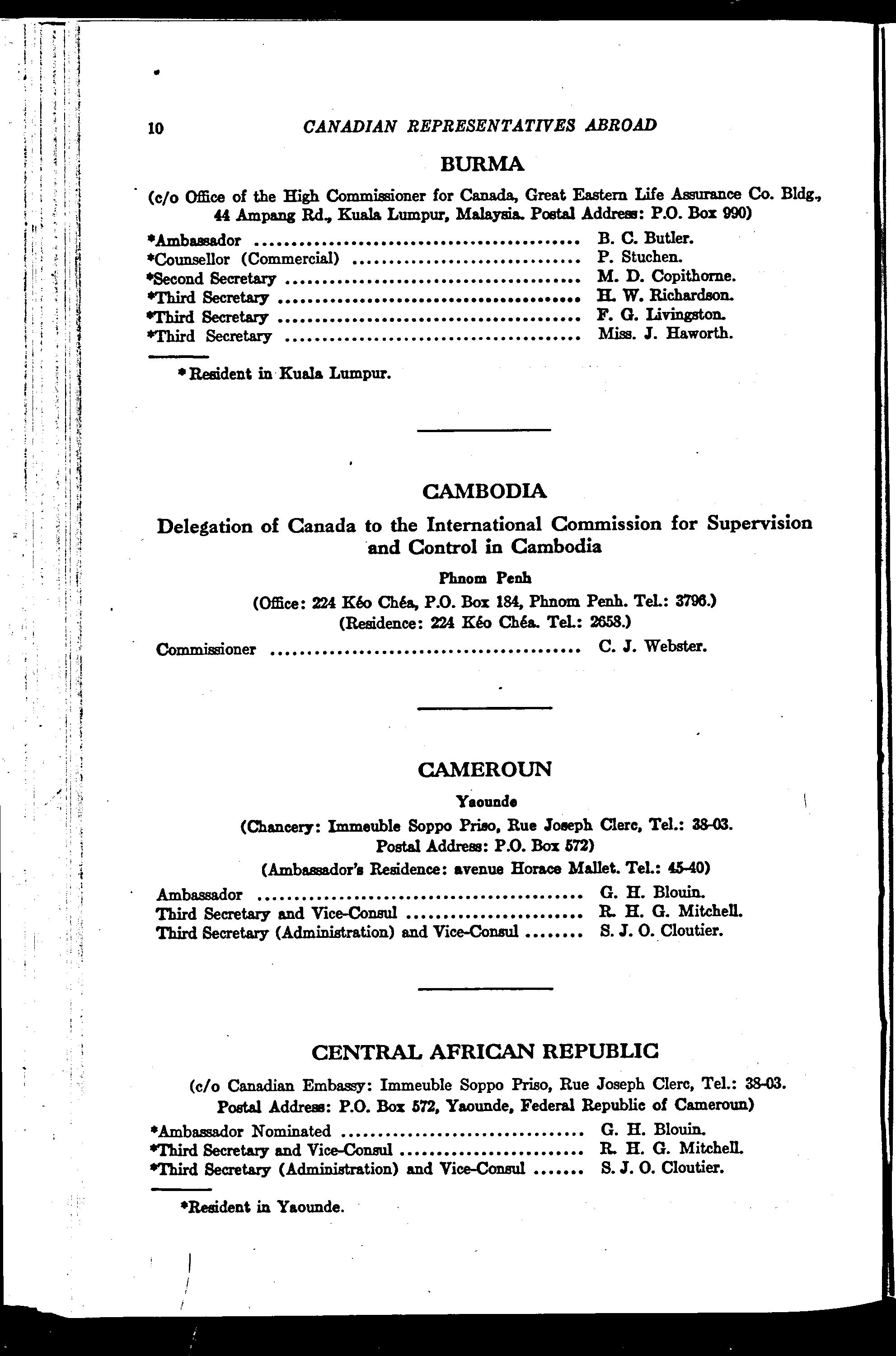 Représentants du Canada à l'extérieur et représentants des autres pays au Canada / Ministère des affaires extérieures. : 1965