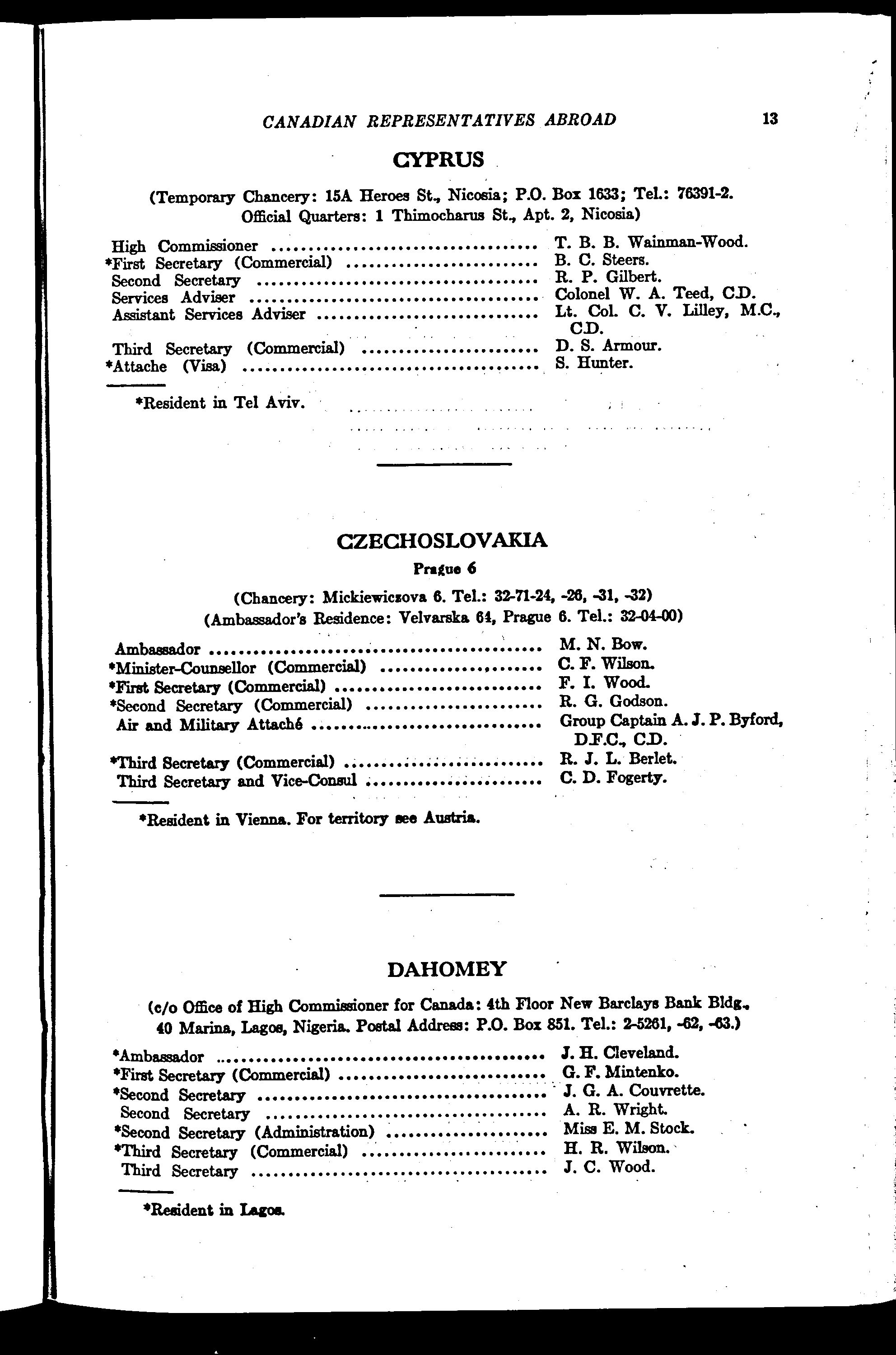 Représentants du Canada à l'extérieur et représentants des autres pays au Canada / Ministère des affaires extérieures. 1965
