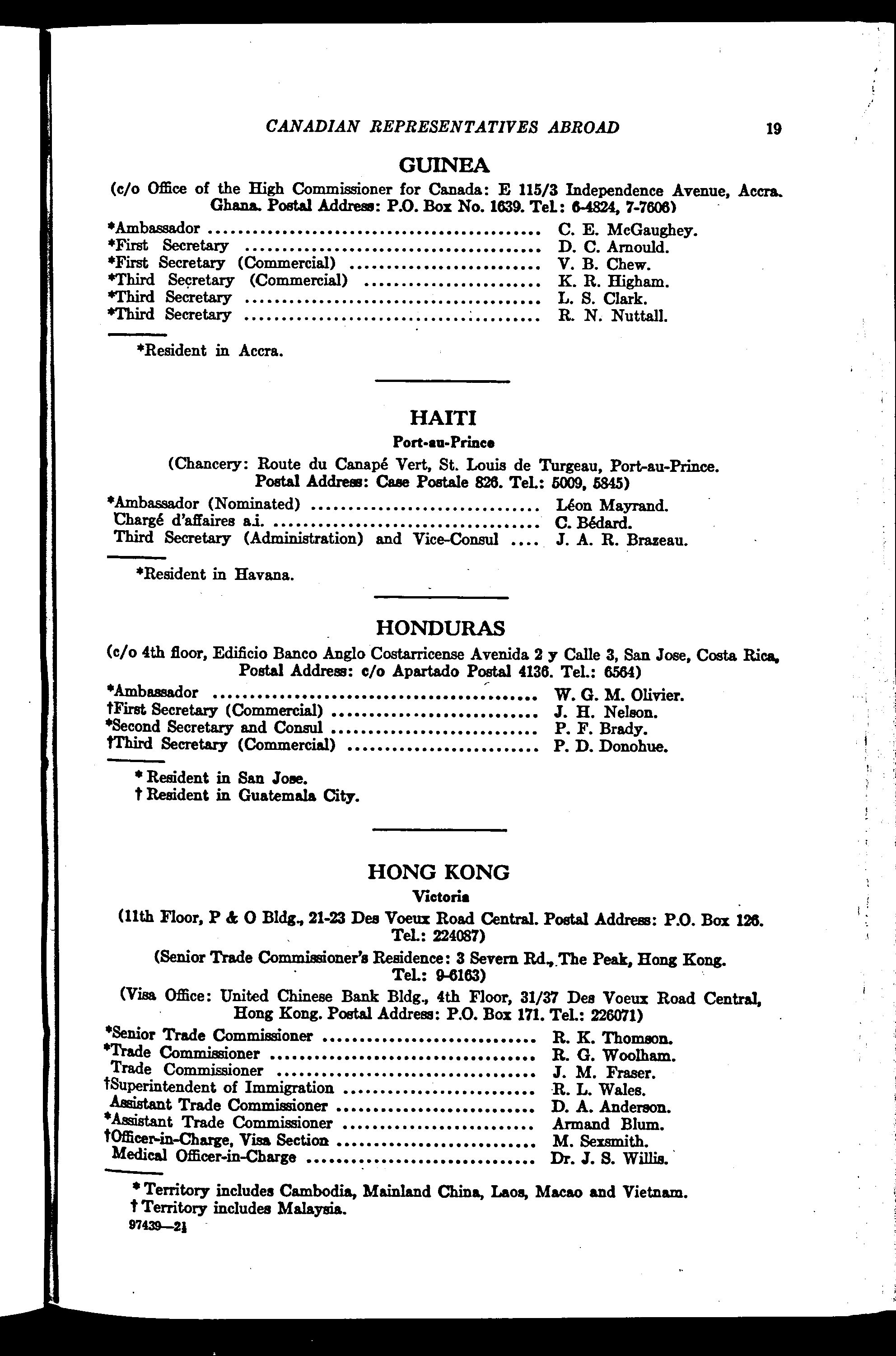 Représentants du Canada à l'extérieur et représentants des autres pays au Canada / Ministère des affaires extérieures. 1965