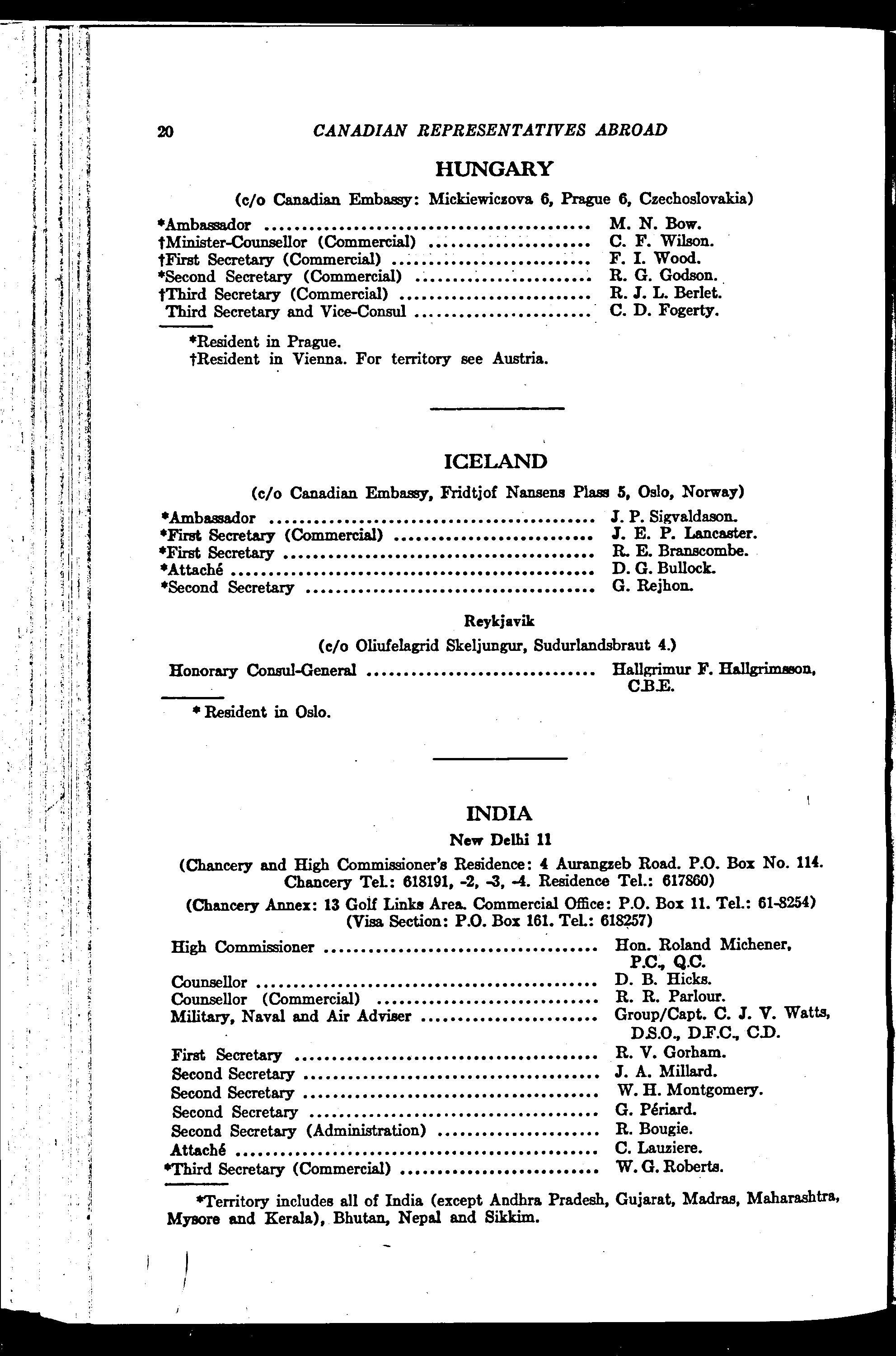 Représentants du Canada à l'extérieur et représentants des autres pays au Canada / Ministère des affaires extérieures. : 1965