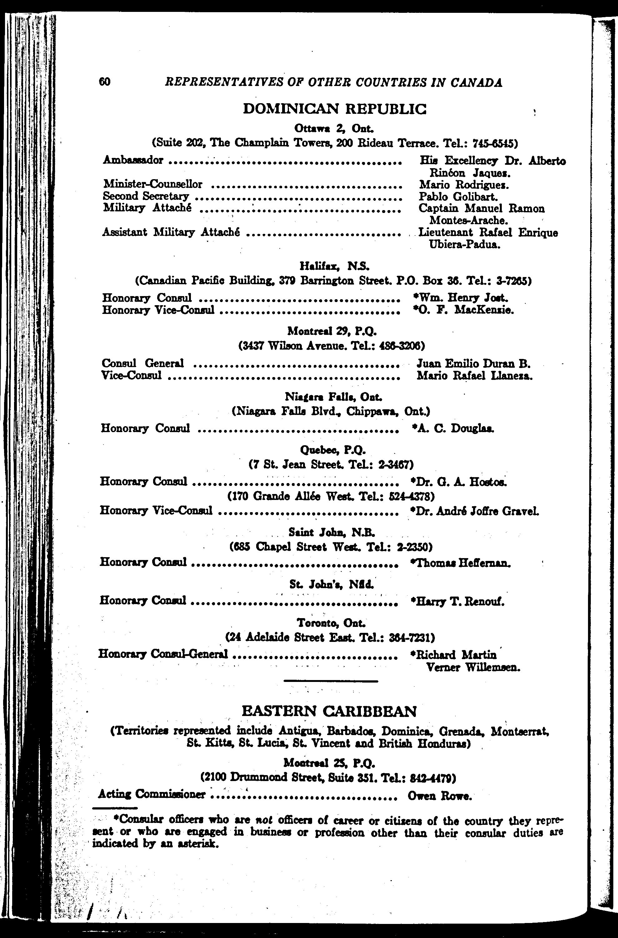 Représentants du Canada à l'extérieur et représentants des autres pays au Canada / Ministère des affaires extérieures. : 1966